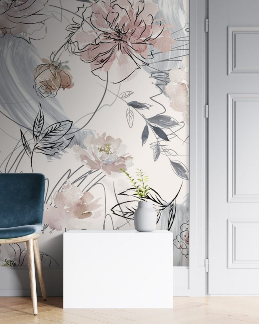 Se desiderate aggiungere un tocco di fascino naturale al vostro spazio, questo murale Delicate Floral Sketch con accenti acquerellati è pura magia. È un delizioso mix di linee aggraziate e colori pastello da sogno, come un bacio in giardino sulla vostra parete. Immaginate di sorseggiare il vostro caffè mattutino, circondati da questo tocco artistico e morbido, come una fuga serena. Perfetto per camere da letto, soggiorni e ovunque sia necessario un tocco di tranquillità. E non è solo un murale: racconta una storia di eleganza, un petalo alla volta.