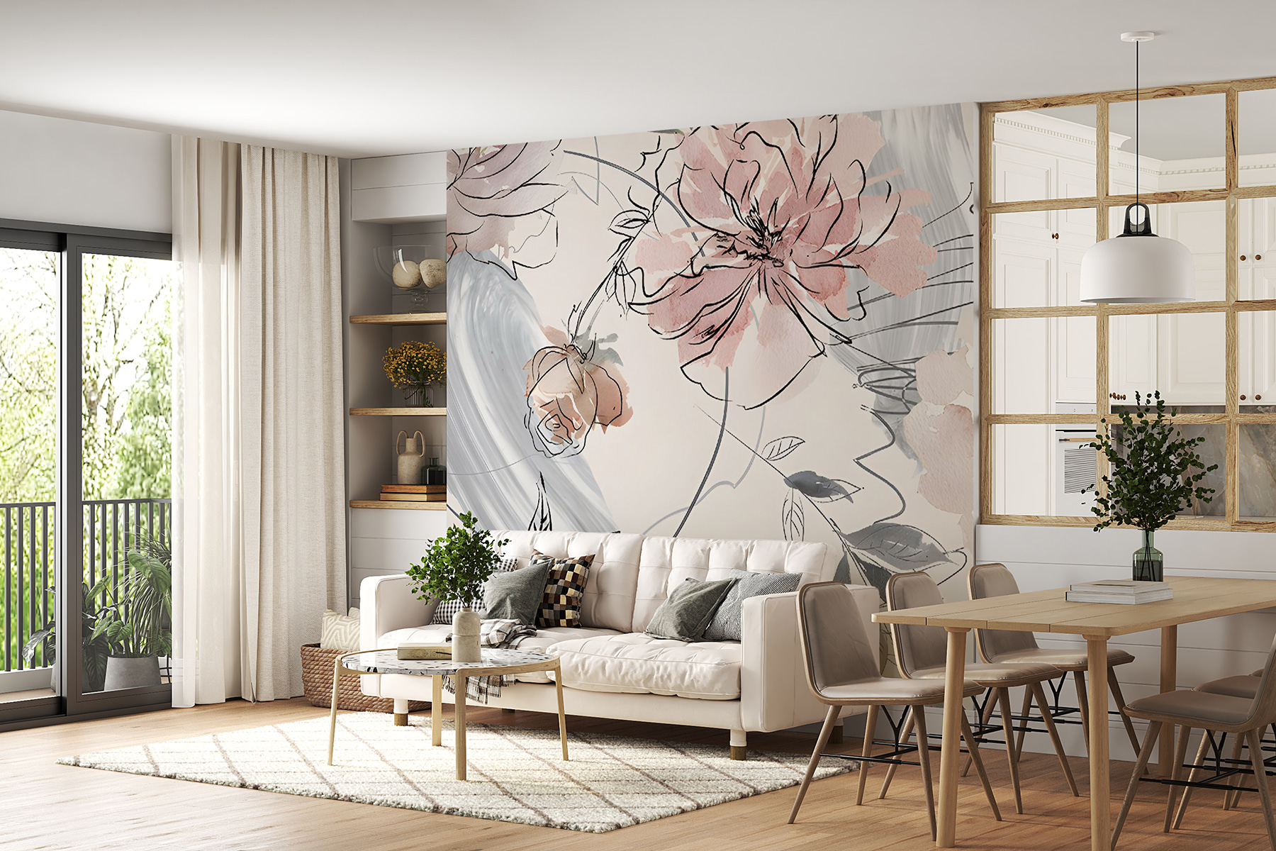 Se desiderate aggiungere un tocco di fascino naturale al vostro spazio, questo murale Delicate Floral Sketch con accenti acquerellati è pura magia. È un delizioso mix di linee aggraziate e colori pastello da sogno, come un bacio in giardino sulla vostra parete. Immaginate di sorseggiare il vostro caffè mattutino, circondati da questo tocco artistico e morbido, come una fuga serena. Perfetto per camere da letto, soggiorni e ovunque sia necessario un tocco di tranquillità. E non è solo un murale: racconta una storia di eleganza, un petalo alla volta.