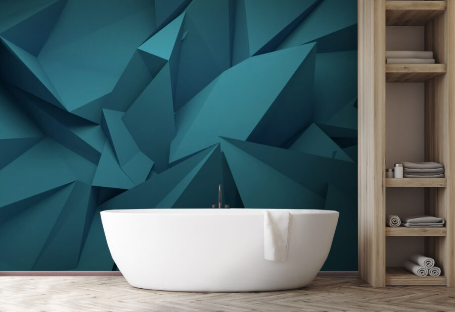Immaginate questo nel vostro salotto: una miscela astratta di forme geometriche blu. È come immergersi in un libro di design 3D e portare l’essenza dell’arte moderna direttamente nel vostro spazio. I blu rilassanti creano un’atmosfera tranquilla, ma gli angoli acuti mantengono l’atmosfera eccitante. Immaginate i vostri amici che entrano e dicono subito: “Wow, che figata!”. È perfetto per chi vuole dare un tocco di classe alla propria stanza senza esagerare: la giusta dose di stile artistico. Sia che vi stiate raggomitolando con un libro o che stiate ospitando un’accogliente riunione, questo murale crea l’atmosfera giusta.