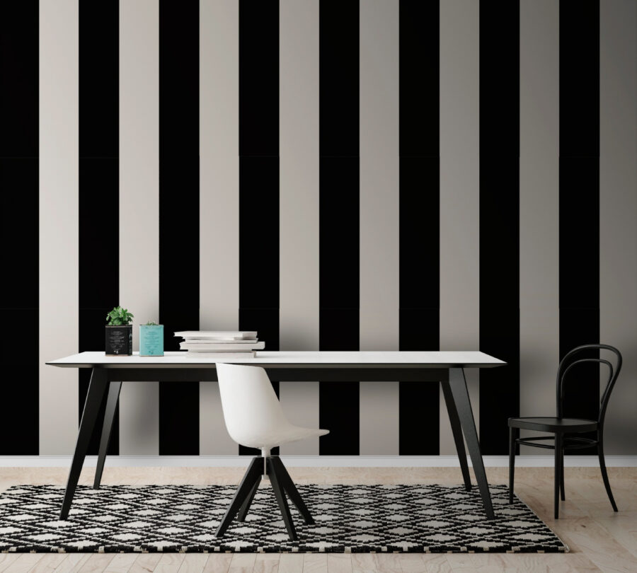 Trasforma qualsiasi spazio con questo straordinario murale a strisce bianche e nere! È come indossare il tuo outfit preferito, ma per le tue pareti: sofisticato ma giocoso. Quelle strisce audaci attirano l’attenzione, rendendo lo spazio moderno e dinamico, perfetto per stimolare le conversazioni o semplicemente per dare alla tua stanza quel fattore “wow”. Immagina di sorseggiare un caffè, guardando questo murale e sentendoti ispirato. Non è solo decorazione, è un stimolo per l’umore. Puoi quasi sentire le strisce sussurrare: “Ehi, guardami!”. Ideale per soggiorni, uffici o qualsiasi angolo che desideri un po’ di carattere.