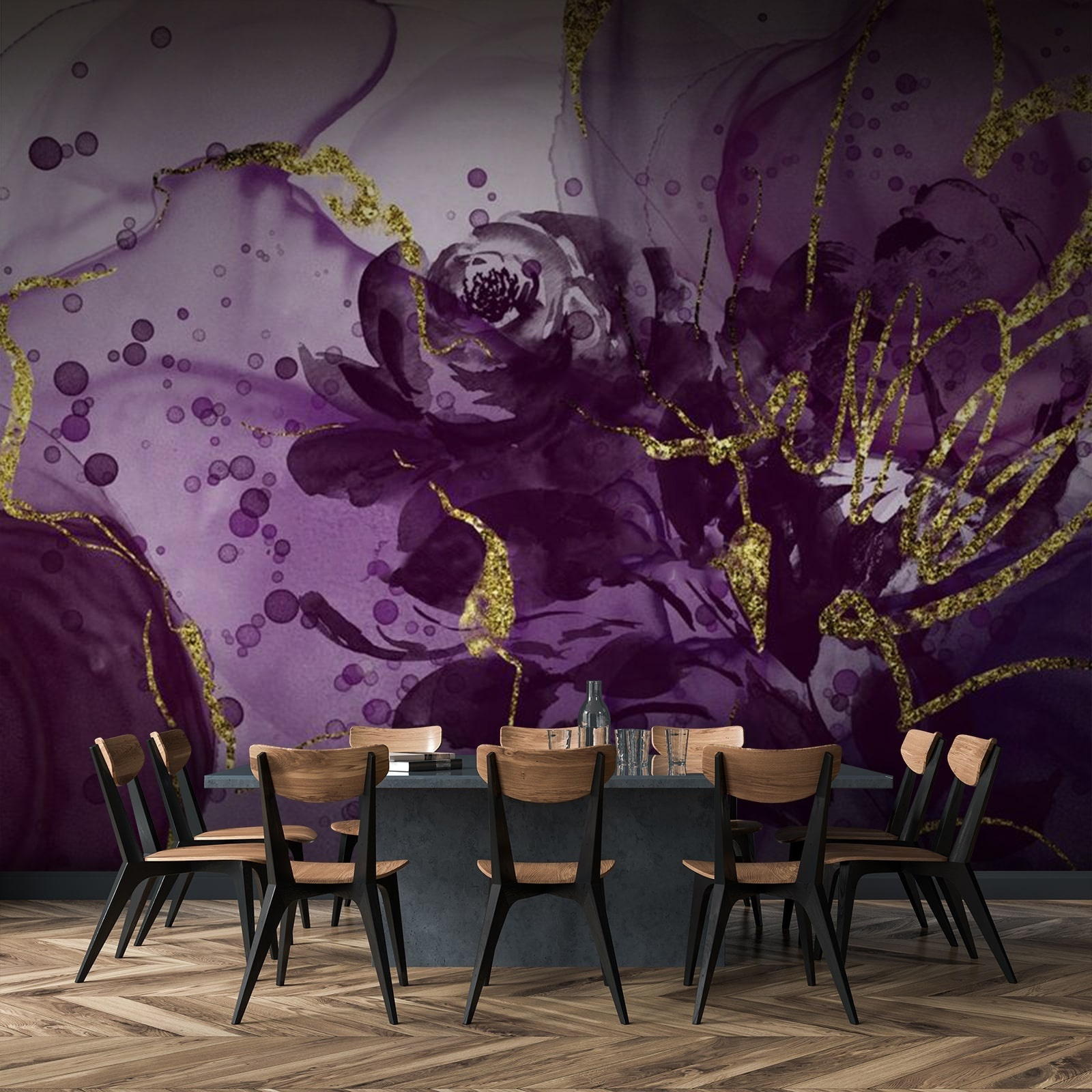 Carta da parati Elegante disegno astratto floreale viola Carta da parati Elegante disegno astratto floreale viola
