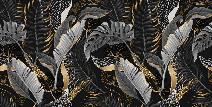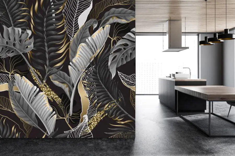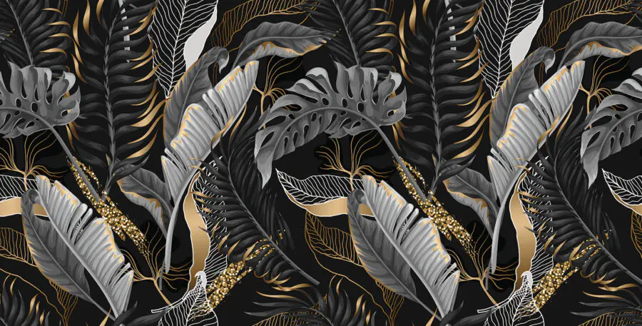 Trasformate il vostro spazio con questo splendido murale con eleganti foglie tropicali su uno sfondo scuro. Immaginate di svegliarvi ogni giorno circondati da questo verde lussureggiante, come se foste entrati in una foresta serena, senza gli insetti! È perfetto per creare un’atmosfera invitante e accogliente. Immaginatevi i pigri fine settimana sorseggiando un caffè mentre vi crogiolate nella bellezza di queste foglie intricate. Il contrasto tra luce e buio aggiunge drammaticità, senza però sopraffare; è come se la natura avesse deciso di organizzare una piccola festa chic proprio sulla vostra parete. Ideale per soggiorni, camere da letto o per quel tranquillo angolo di lettura che ha bisogno di un tocco in più. Perché accontentarsi della semplicità quando si può avere una mini fuga jungly?
