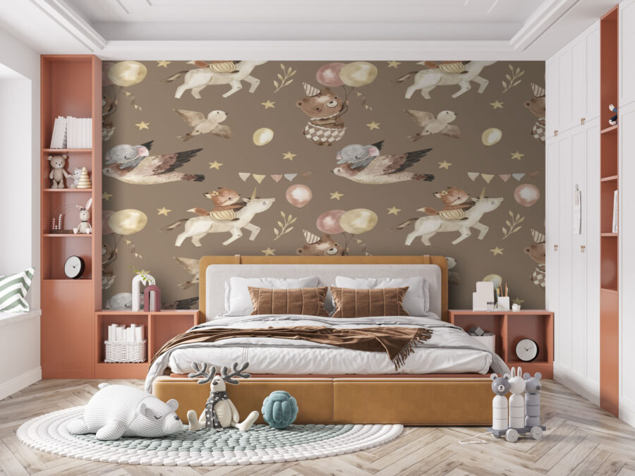 Trasformate qualsiasi stanza in un bizzarro paese delle meraviglie con questo affascinante murale con animali giocosi e palloncini colorati. Immaginate di entrare in uno spazio dove un orso tiene in mano dei palloncini, mentre un piccolo elefante condivide un giro con un allegro uccellino. È come una festa in cui ogni creatura è invitata: quanto è divertente? Questo murale aggiunge un tocco di immaginazione, scatenando la gioia e le vibrazioni della narrazione. Perfetto per le stanze dei bambini o per qualsiasi area che necessiti di una dose di allegria, è un elemento di conversazione immediato. Che si tratti di un angolo accogliente o di una stanza dei giochi, questo murale è destinato a portare sorrisi e senso di avventura!