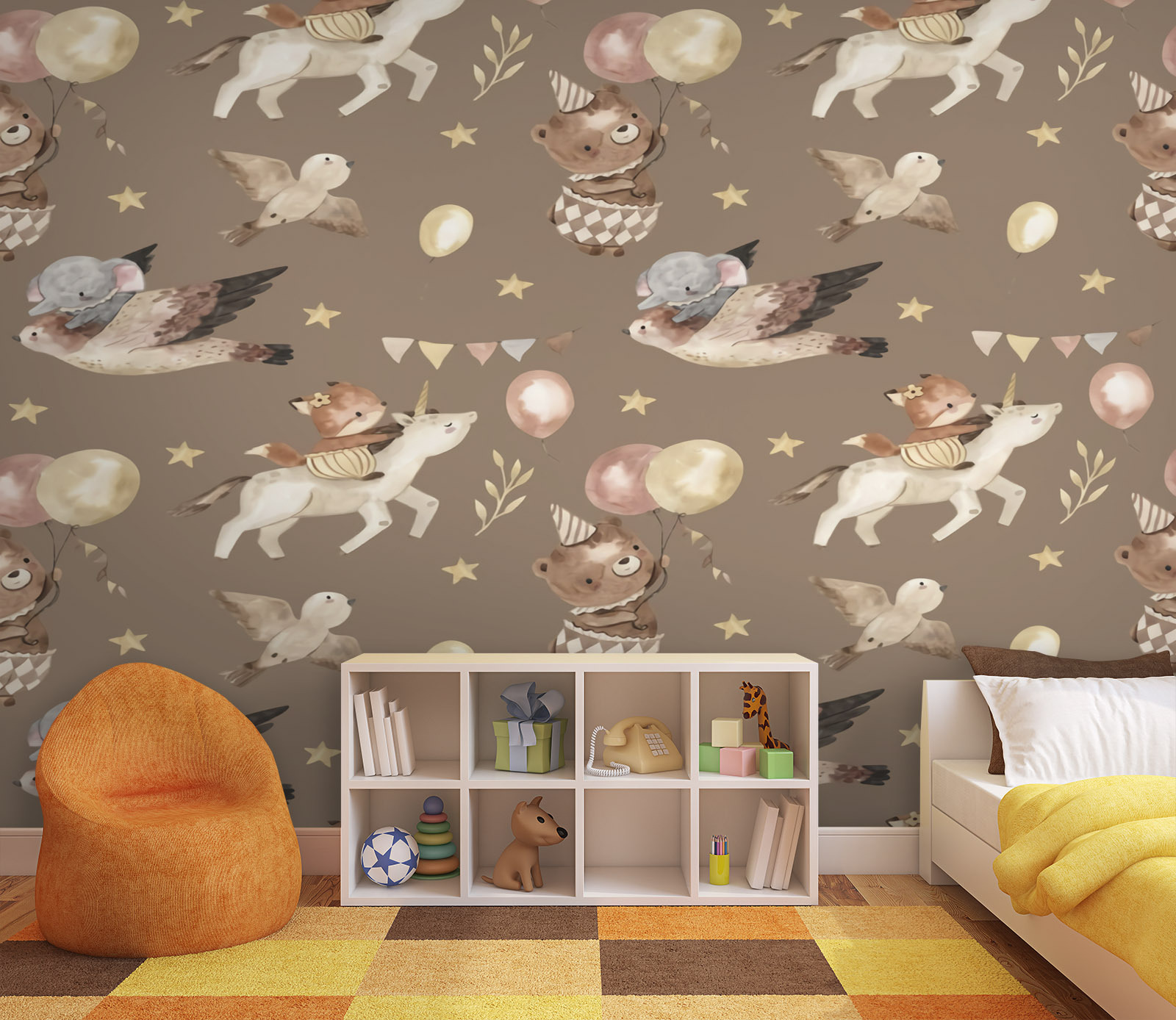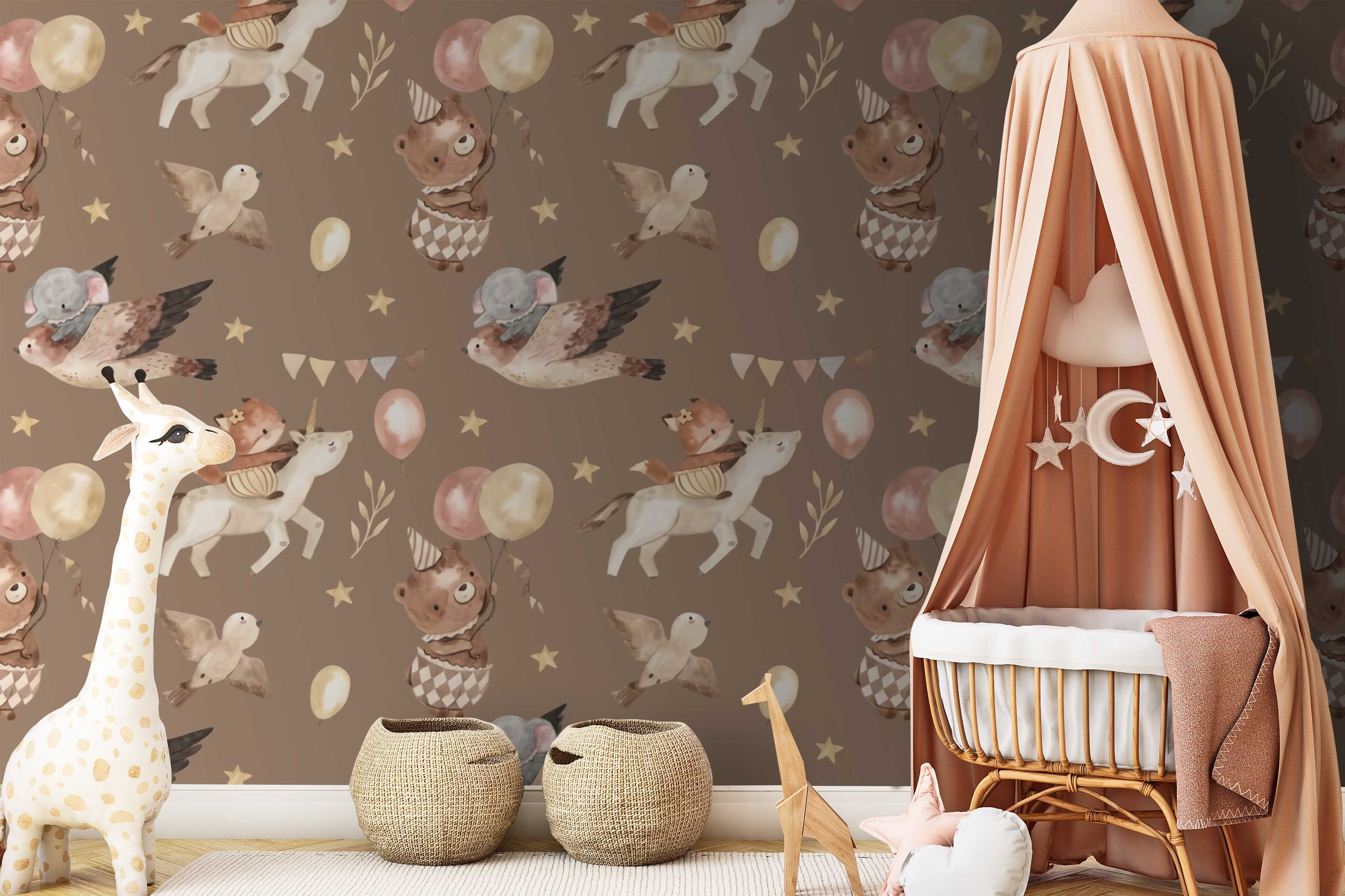 Trasformate qualsiasi stanza in un bizzarro paese delle meraviglie con questo affascinante murale con animali giocosi e palloncini colorati. Immaginate di entrare in uno spazio dove un orso tiene in mano dei palloncini, mentre un piccolo elefante condivide un giro con un allegro uccellino. È come una festa in cui ogni creatura è invitata: quanto è divertente? Questo murale aggiunge un tocco di immaginazione, scatenando la gioia e le vibrazioni della narrazione. Perfetto per le stanze dei bambini o per qualsiasi area che necessiti di una dose di allegria, è un elemento di conversazione immediato. Che si tratti di un angolo accogliente o di una stanza dei giochi, questo murale è destinato a portare sorrisi e senso di avventura!