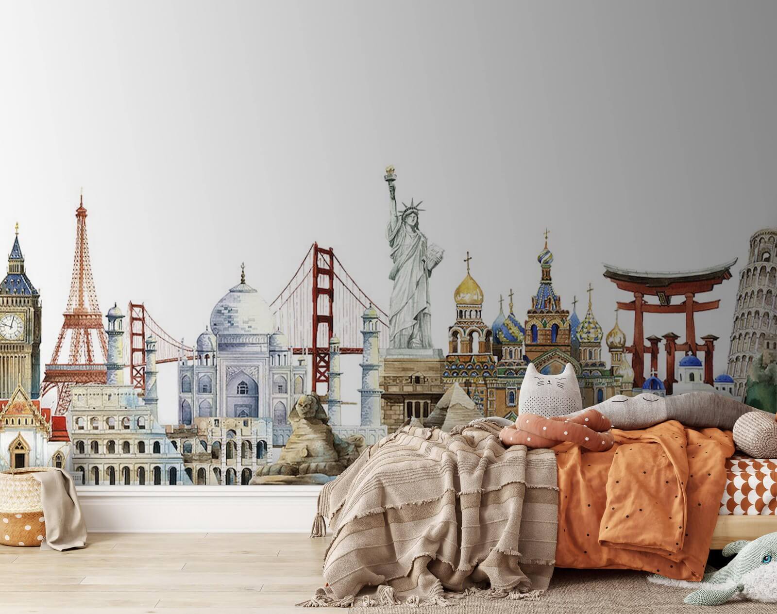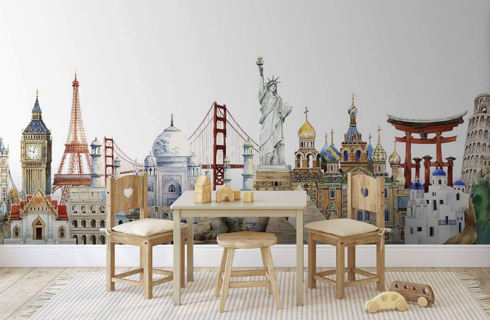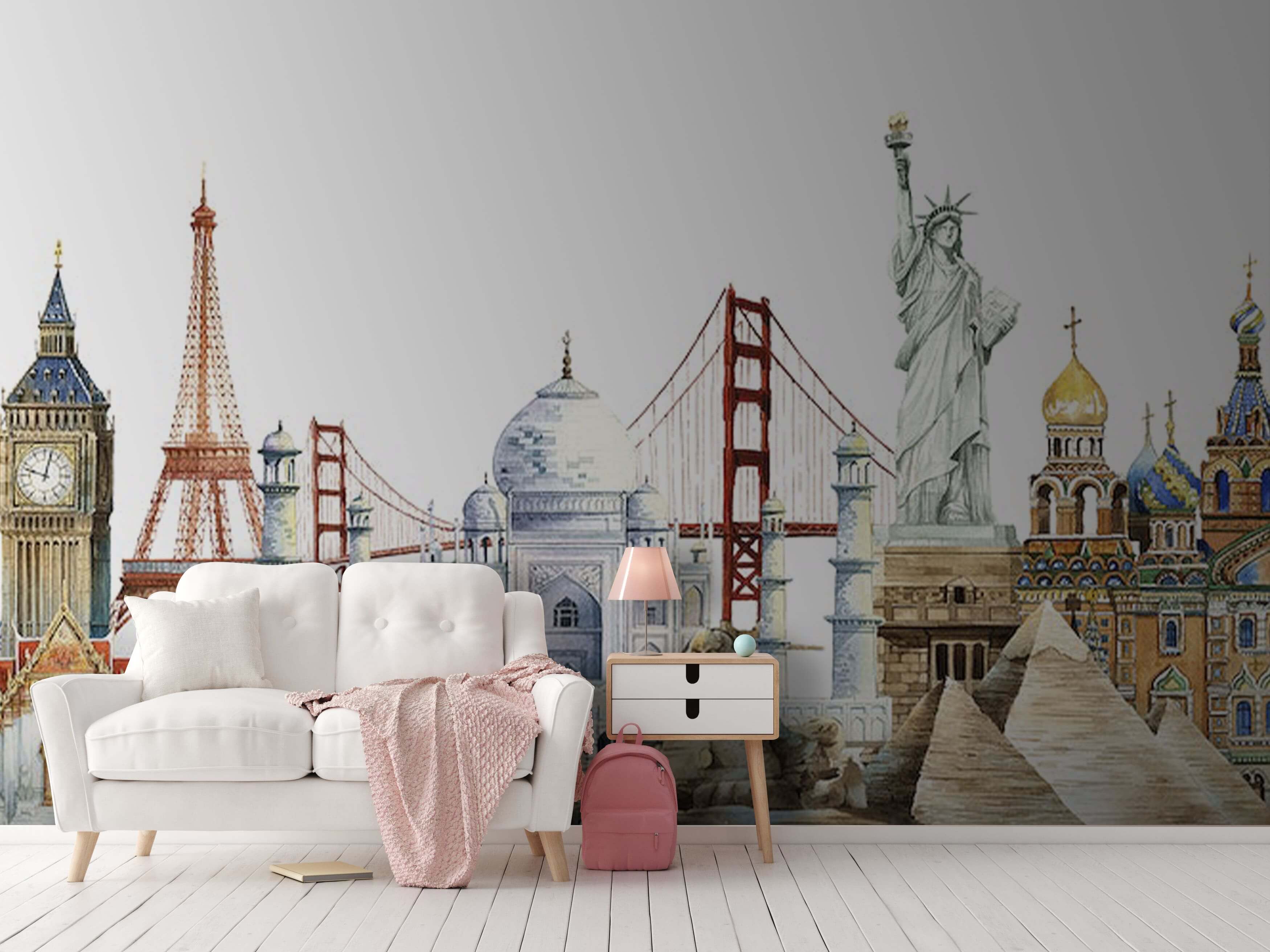 Carta da parati Acquerello di un famoso punto di riferimento Carta da parati Acquerello di un famoso punto di riferimento