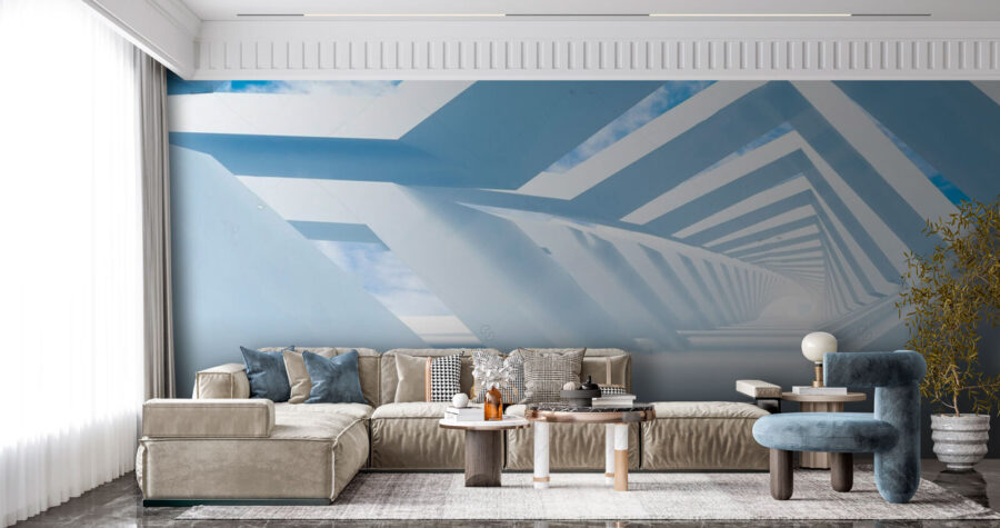 Entrate in un regno da sogno con questo murale che presenta una struttura bianca di grande impatto su un cielo blu brillante. Sembra di passeggiare in un paradiso futuristico dove tutto è leggero e arioso, vero? Immaginate di sorseggiare il vostro caffè mattutino guardando quelle soffici nuvole che si muovono alla deriva, quasi sonnecchiando al sole. Le linee pulite si intrecciano e si trasformano, attirandovi mentre la vostra mente vaga. Perfetto per un salotto o anche per un accogliente studio, invita a un senso di calma e creatività. Non è solo arredamento: è come una mini-vacanza quotidiana, pronta ad accendere la gioia e l’ispirazione. Potreste persino perdervi in sogni a occhi aperti, senza dimenticare di tornare alla realtà ogni tanto!