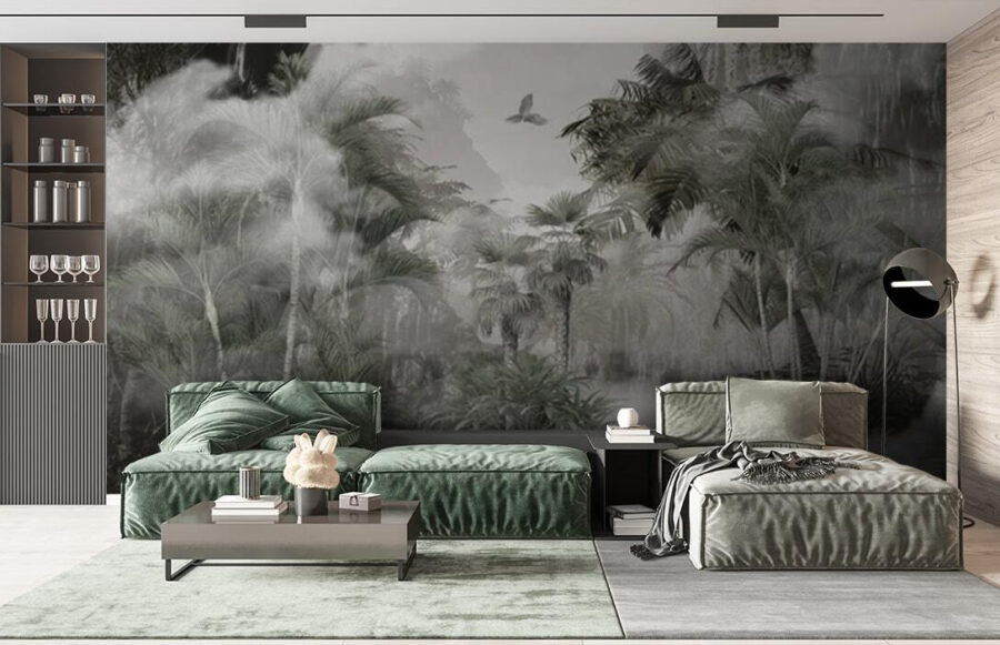 Perfetto per soggiorni, camere da letto o anche per un accogliente angolo lettura, questo murale aggiunge un’energia calma e quasi pacifica a qualsiasi stanza. Gli ospiti potrebbero fare un doppio sguardo, chiedendosi se sono incappati in una fuga esotica. E onestamente, è difficile non perdersi nei dettagli, scorgendo nuove foglie o il sottile cambiamento di luce a ogni sguardo.