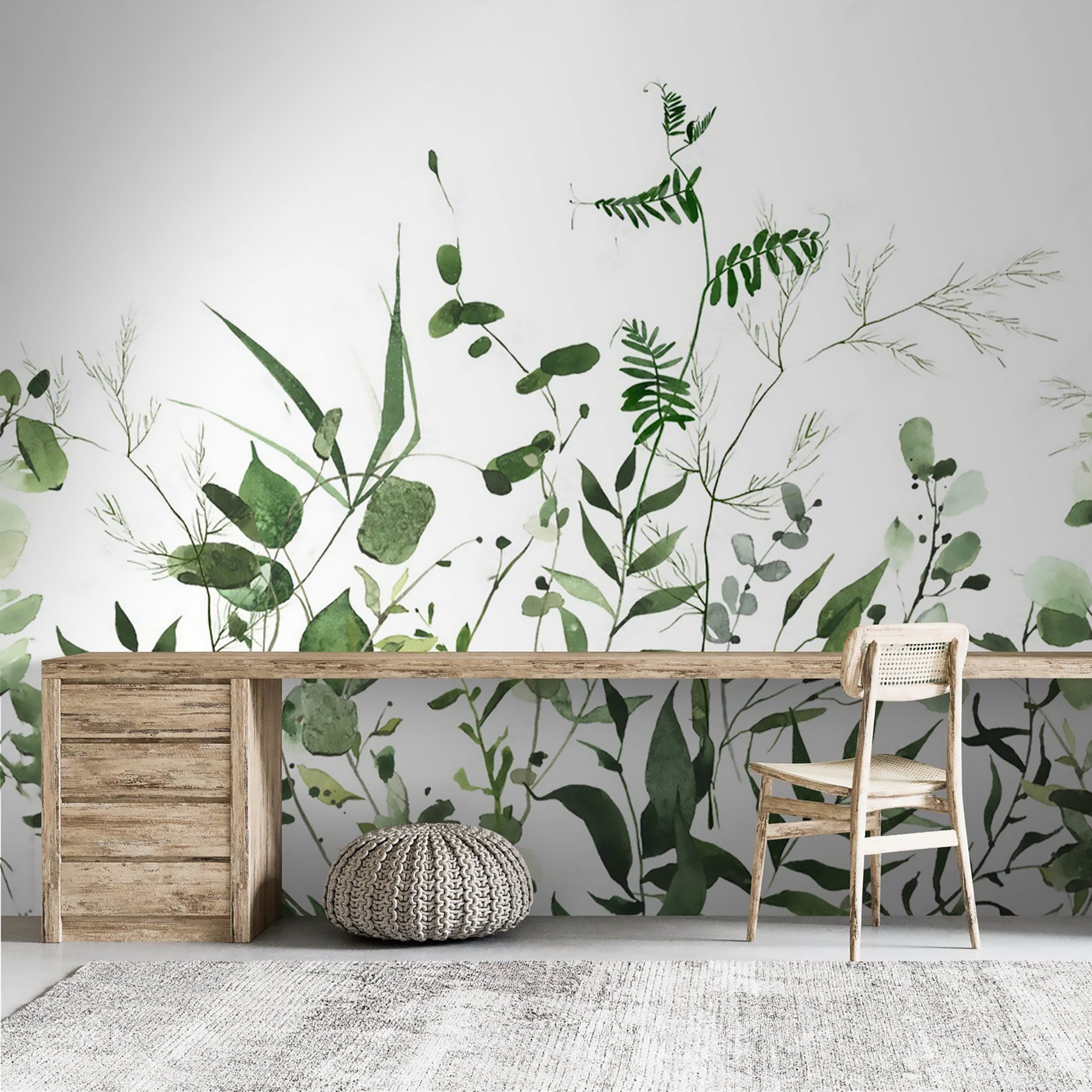 1 recensione per Carta da parati Foglie verdi su sfondo bianco