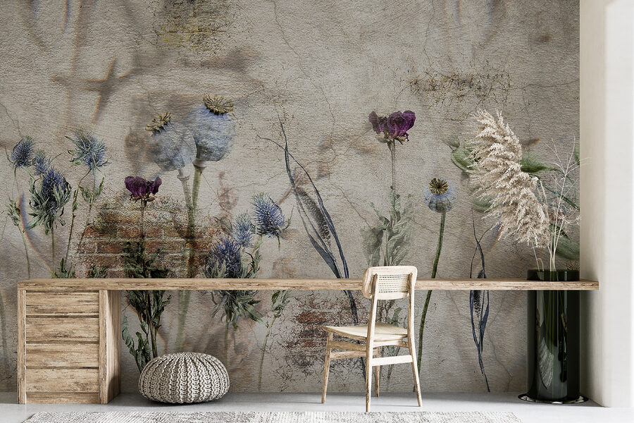 Trasformate qualsiasi spazio con questo splendido murale che presenta un collage botanico su uno sfondo splendidamente stratificato. Immaginate di entrare in una stanza dove delicate fioriture danzano dolcemente contro un sussurro di fascino vintage. I colori sbiaditi evocano un senso di calma, invitandovi a fare una pausa e a respirare profondamente. È come portare un piccolo giardino in casa, senza doverlo innaffiare. Perfetto per un angolo accogliente o per quella parete spoglia che chiede personalità, questo murale aggiunge profondità e calore. Non è solo un elemento decorativo: è uno stato d’animo, un’atmosfera, un sottile promemoria per rallentare e apprezzare l’arte della natura.