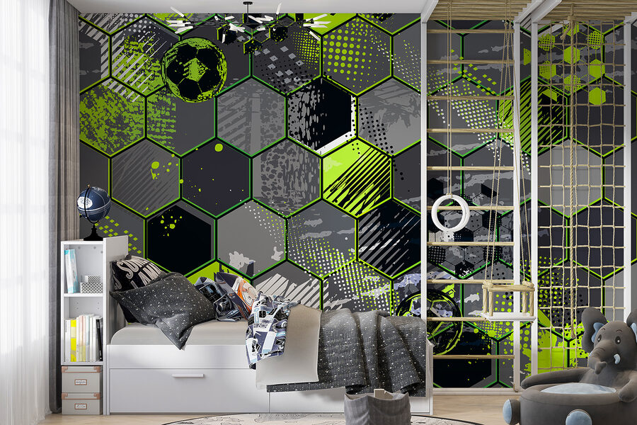 Il motivo è un esagono divertente, con spruzzi di verde neon e di grigio lucido. È come se un campo da calcio si scontrasse con l’arte moderna. Perfetto per chi ama un pizzico di divertimento e di stile nell’arredamento. Non è una semplice carta da parati, è una dichiarazione. Immaginatevi di svegliarvi, prendere il caffè e avere una piccola scossa di felicità ogni volta che ci passate accanto. Un ottimo spunto di conversazione per tutte quelle volte che gli amici vengono a chiedervi: “Dove l’hai presa?”.