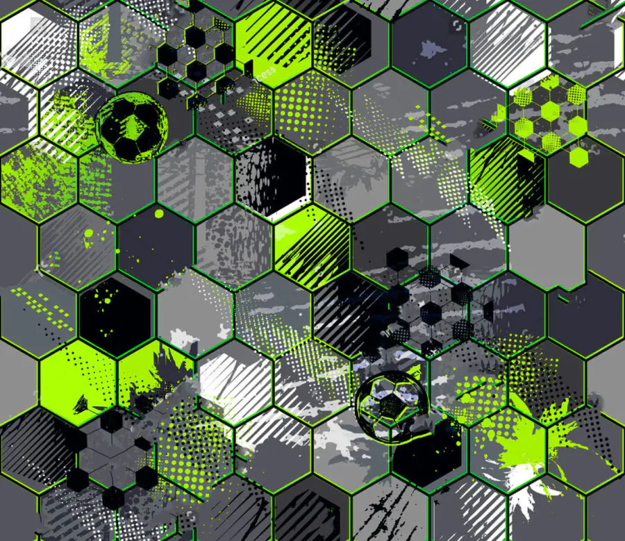 Il motivo è un esagono divertente, con spruzzi di verde neon e di grigio lucido. È come se un campo da calcio si scontrasse con l’arte moderna. Perfetto per chi ama un pizzico di divertimento e di stile nell’arredamento. Non è una semplice carta da parati, è una dichiarazione. Immaginatevi di svegliarvi, prendere il caffè e avere una piccola scossa di felicità ogni volta che ci passate accanto. Un ottimo spunto di conversazione per tutte quelle volte che gli amici vengono a chiedervi: “Dove l’hai presa?”.