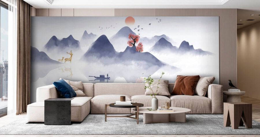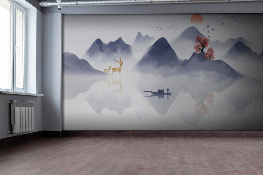 Trasforma qualsiasi stanza in un rifugio sereno con questo splendido murale. Raffigurante una tranquilla barca che scivola attraverso una foresta nebbiosa, circondata da maestose montagne e alberi rigogliosi, ti invita a sognare ad occhi aperti. Immagina di sorseggiare un caffè mentre il sole mattutino fa capolino all’orizzonte, proiettando morbide sfumature sull’acqua. È come una mini vacanza ogni volta che ci passi davanti. Perfetto per quegli angoli accoglienti o per un ufficio che ha bisogno di un po’ di atmosfera zen. Inoltre, c’è un cervo: chi non vorrebbe osservare la fauna selvatica senza uscire di casa? Abbraccia il fascino della natura!