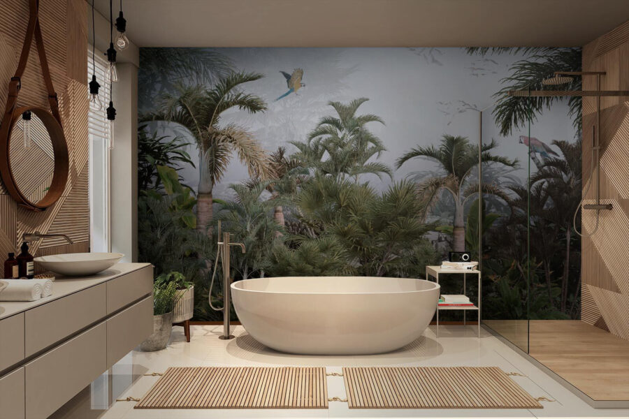 Trasforma il tuo spazio in un rifugio sereno con questo incantevole murale raffigurante un uccello che vola sopra una rigogliosa foresta tropicale. Immagina di svegliarti con la vista rilassante di verdi vivaci e uccelli colorati, che sussurrano di avventure lontane. È come portare un angolo di paradiso direttamente nel tuo salotto. I tuoi amici potrebbero persino pensare che ti sei trasferito in un accogliente rifugio nella giungla. Perfetto per chi desidera un po’ di natura senza fastidiosi insetti! Che si tratti di un tranquillo angolo lettura o di una vivace sala giochi, questo murale crea un’atmosfera vivace e rilassante allo stesso tempo. Goditi ogni giorno il calore dei tropici, senza bisogno di crema solare.