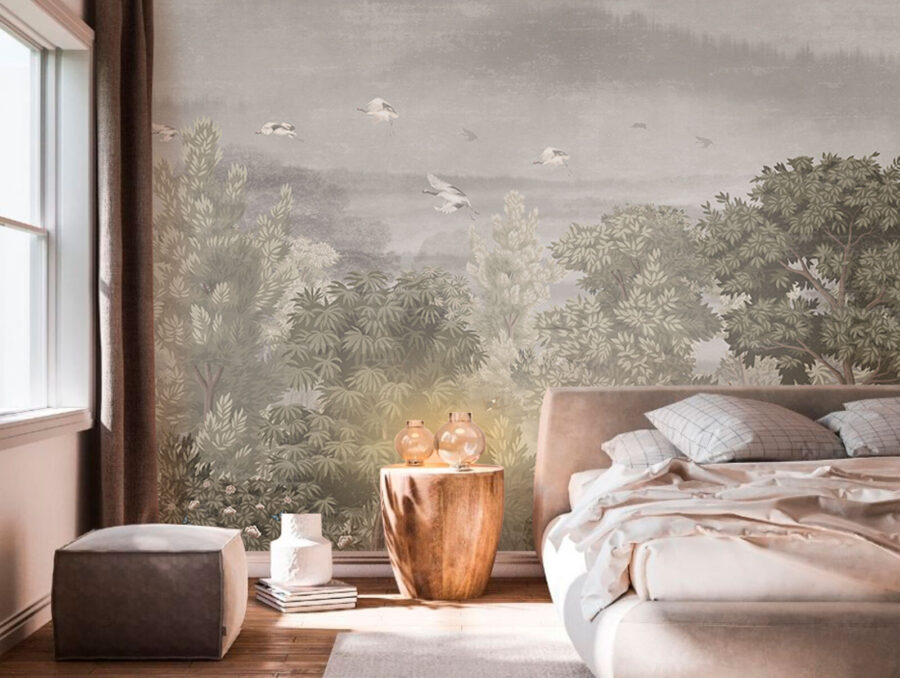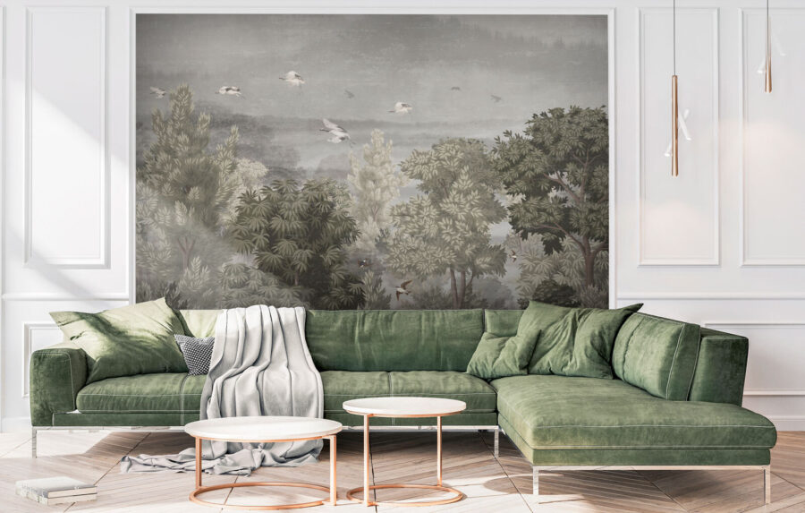 Immaginate di entrare in una stanza e bam! Ecco un murale di uccelli che volano in alto nel cielo, circondati da una vegetazione lussureggiante. È come entrare nel proprio giardino segreto. Sentite già la tranquillità? Ora immaginate una leggera brezza che fa frusciare le foglie ogni volta che lo guardate. È più di un arredamento: è una piccola fuga dal tran tran quotidiano.