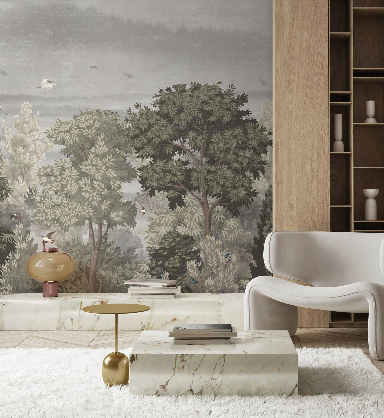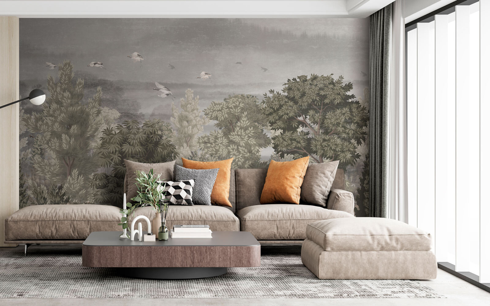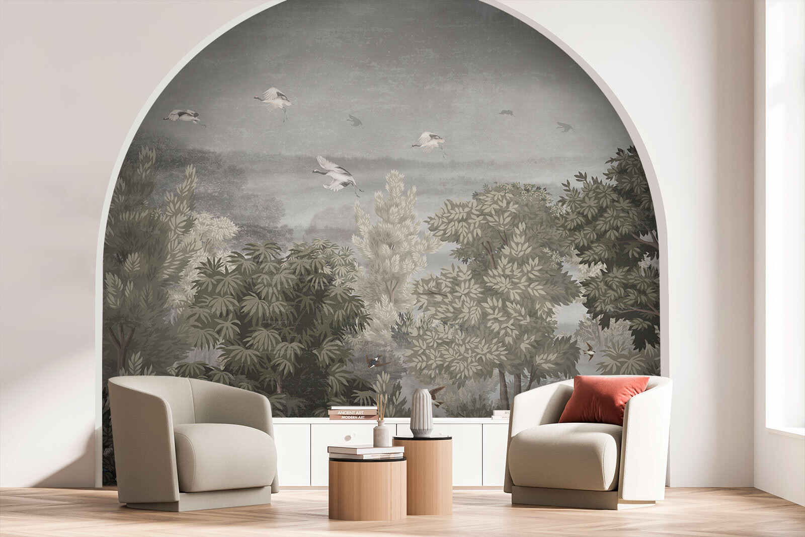 Immaginate di entrare in una stanza e bam! Ecco un murale di uccelli che volano in alto nel cielo, circondati da una vegetazione lussureggiante. È come entrare nel proprio giardino segreto. Sentite già la tranquillità? Ora immaginate una leggera brezza che fa frusciare le foglie ogni volta che lo guardate. È più di un arredamento: è una piccola fuga dal tran tran quotidiano.