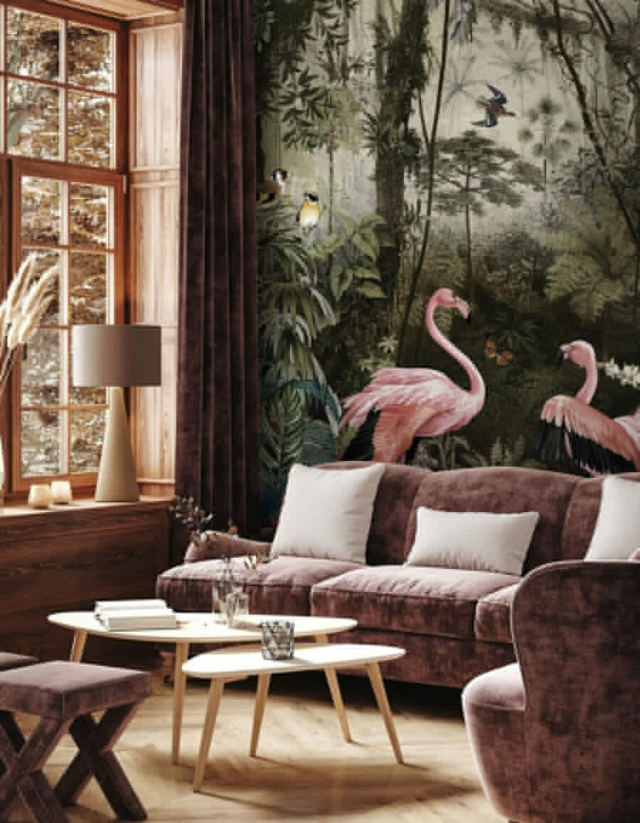 Immaginate di entrare in una giungla lussureggiante con la graziosa presenza dei fenicotteri: è questo il risultato di questo murale. Perfetto per aggiungere un tocco unico, è come avere una piccola fetta di paradiso esotico proprio sulla vostra parete. I rosa vivaci dei fenicotteri risaltano sul verde intenso della giungla. È così dettagliato che vi sembrerà di essere in spedizione ogni volta che lo guarderete. Ideale per chi desidera un pizzico di avventura nel proprio arredamento. Davvero, chi potrebbe resistere a questi affascinanti fenicotteri? Sembra proprio che possano uscire e unirsi a voi per il tè!