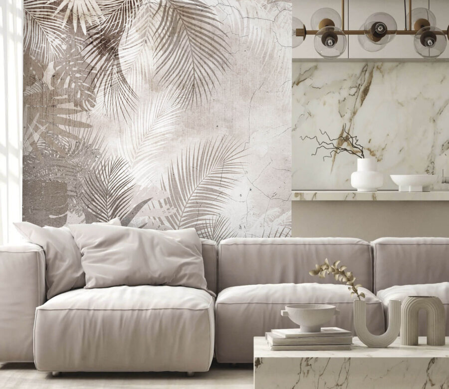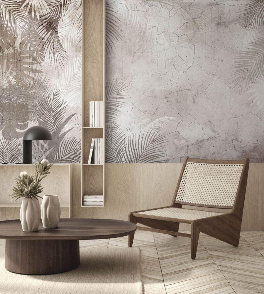Trasformate il vostro spazio in un’oasi lussureggiante con questo murale che presenta foglie tropicali su uno sfondo leggermente rovinato. Immaginate di entrare in una giungla serena ogni volta che entrate nella stanza: il verde tenue e i toni della terra creano un’atmosfera rilassante che invita al relax. È come portare l’aria aperta in casa senza i fastidiosi insetti. Perfetto per un accogliente angolo lettura o per una cucina vivace, questo murale suscita gioia e conversazione. Chi non vorrebbe chiacchierare degli ultimi consigli per la cura delle piante circondato da uno sfondo così rinfrescante? È un’arte che sembra un abbraccio della natura, che fa sentire ogni spazio un po’ più speciale, come se la natura avesse improvvisamente deciso di unirsi alla vostra casa.