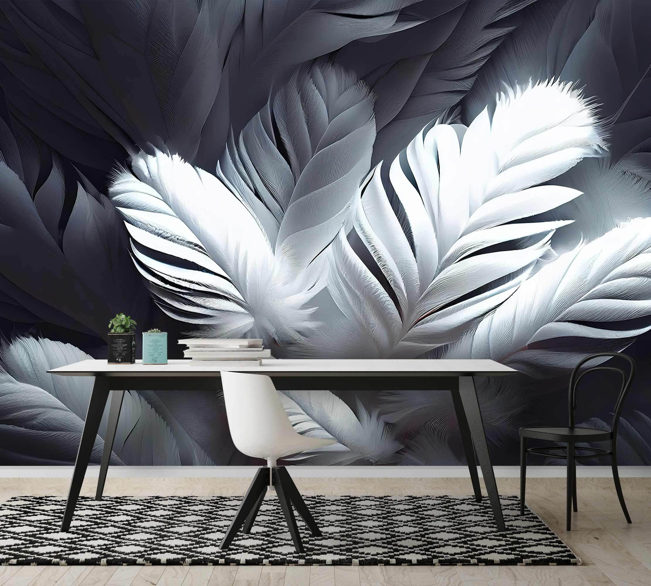 Trasformate una stanza con “Soft White Feathers in Gentle Layers”, dove l’eleganza incontra l’estrosità. Immaginate di entrare in uno spazio che sembra leggero come un sussurro, con delicate piume che danzano sulle pareti. Questo murale aggiunge un tocco sognante, facendo sentire più serena anche la giornata più impegnativa. Immaginatevi serate accoglienti in un rifugio ispirato alle piume, sorseggiando un tè e perdendovi in un buon libro. È come portare il cielo in casa: non male, no? A ogni sguardo, questo murale invita a rilassarsi, facendo sentire la casa un po’ più speciale.