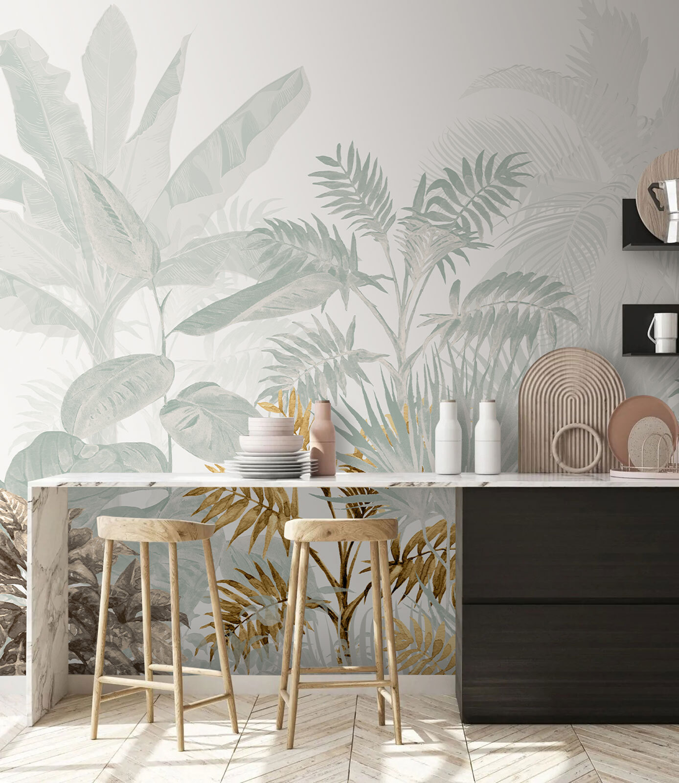 Trasformate qualsiasi spazio in una fuga tropicale con questo splendido murale con foglie lussureggianti e sognanti che praticamente sussurrano: “Vieni a rilassarti!”. Immaginate di svegliarvi ogni giorno in questo scenario sereno: è come se foste in una vacanza senza fine. I toni tenui creano un’atmosfera rilassante, perfetta per rilassarsi dopo una lunga giornata. Gli amici potrebbero persino pensare che abbiate un giardino segreto nascosto. Ideale per un accogliente angolo lettura o un allegro salotto, questo murale unisce la natura allo stile. Immaginatevi: sorseggiare un drink, il verde lussureggiante che vi circonda e tutte le preoccupazioni che si allontanano. Pura beatitudine, vero?