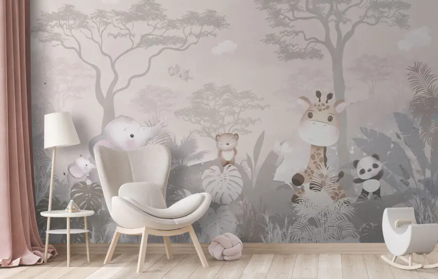 Ciao a tutti! Avete visto il murale “Giraffa seduta su un albero”? È il tipo di opera d’arte che vi porta direttamente in un mondo magico e stravagante. Perfetto per le stanze dei bambini – o anche per il bambino di ogni adulto – presenta una giraffa deliziosamente serena, appollaiata con disinvoltura tra amichevoli amici del bosco dagli occhi spalancati, come un elefante, un panda e un orso. I tenui colori pastello emanano un’atmosfera così rilassante da sembrare una dolce ninna nanna per le vostre pareti. Non riuscite a immaginare il vostro piccolo che lo guarda prima di andare a dormire, raccontando le avventure che questi animali potrebbero vivere? Non è solo un murale: è un invito a uno spazio sognante e pieno di storie, dove l’immaginazione si scatena. Inoltre, è perfetto per abbellire qualsiasi stanza con una dose di fascino e una spruzzata di allegria!