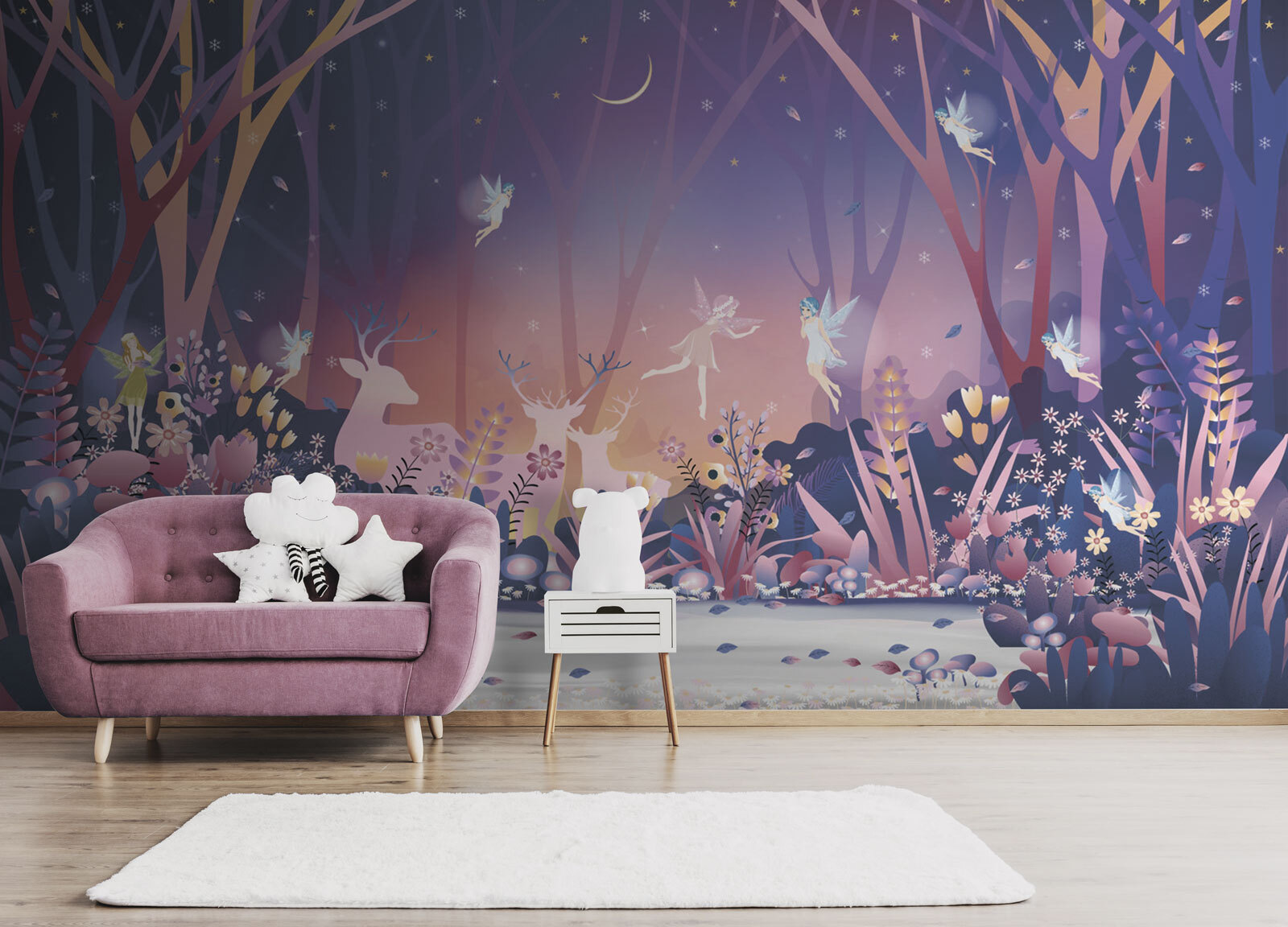 Immaginate una foresta magica sulla parete del vostro bambino! Questo incantevole murale, intitolato “Fiore rosa con centro bianco”, renderà la stanza di ogni bambino viva e stravagante. Pensate: fate luminose, cervi tranquilli e una flora vivace, il tutto avvolto in una sognante tonalità crepuscolare. È come se le storie della buonanotte fossero saltate fuori dalla pagina e si fossero accampate. Perfetto per le camerette, le stanze delle bambine o anche per un accogliente angolo per il pisolino. I bambini avranno la sensazione di entrare in una fiaba ogni volta che vi entreranno. Inoltre, è un fantastico sfondo per tutte le avventure immaginative e i sogni ad occhi aperti! Certo, è artistica ed elegante, ma soprattutto è puro incanto. Il tipo di incanto in cui le risate e i sussurri di “c’era una volta” fluttuano nell’aria.