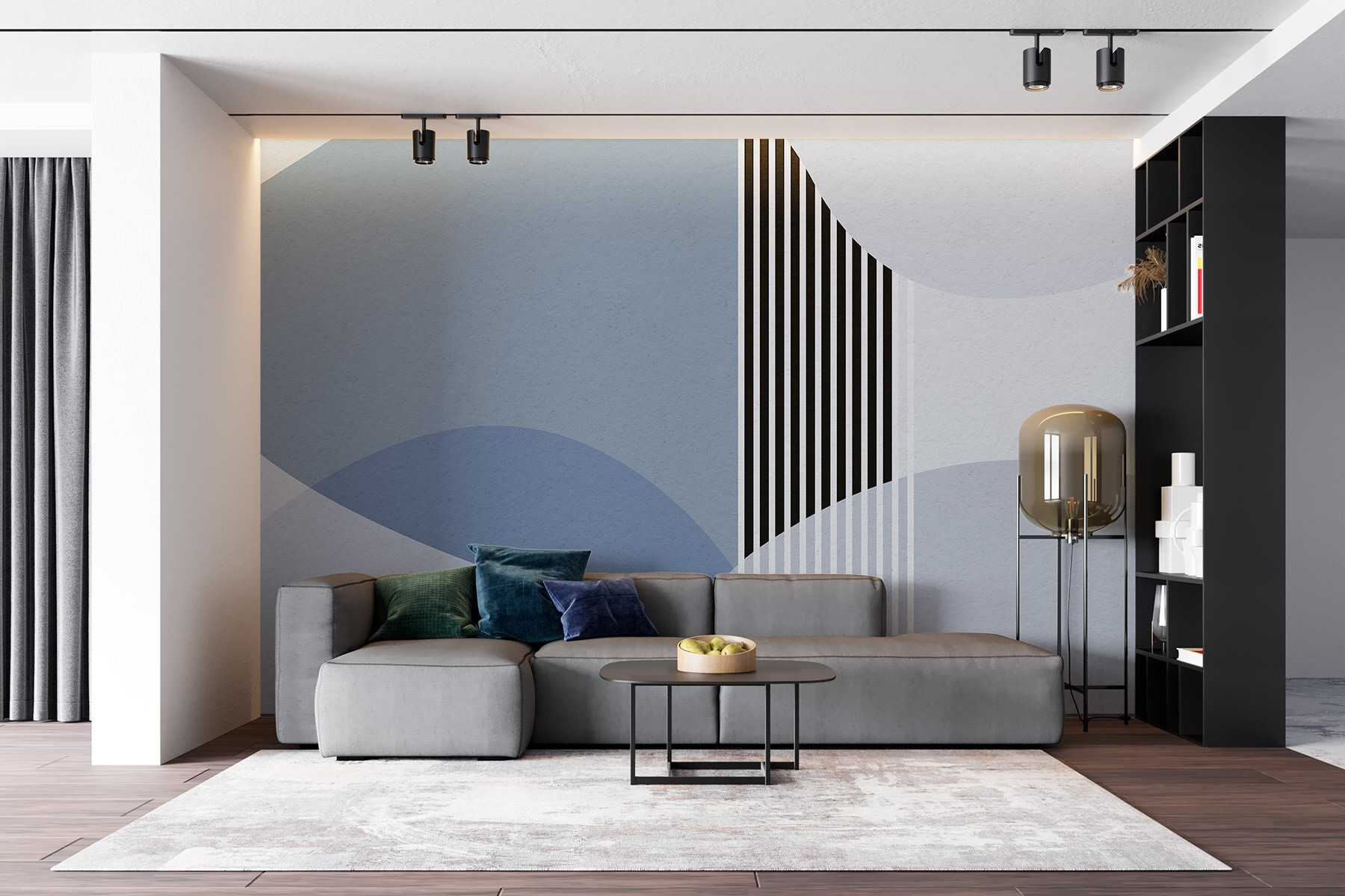 Guardate esattamente come apparirà il vostro spazio con la nuova carta da parati prima di acquistarla. Visualizzazione professionale da parte di designer esperti senza alcun costo o obbligo di acquisto.