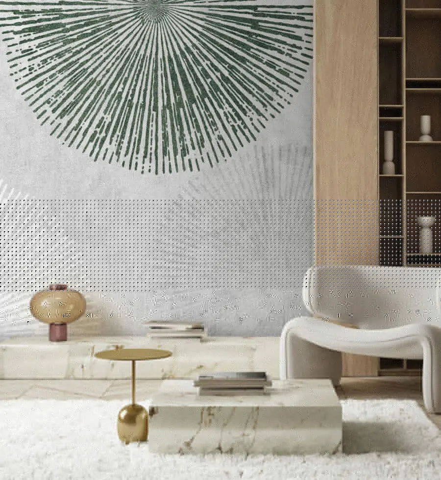Trasformate il vostro spazio con questo accattivante murale che presenta giocosi motivi radiali su uno sfondo unico. Immaginatevi un soggiorno che improvvisamente assomiglia meno al vecchio appartamento da scapolo di vostro cugino e più a un caffè artistico in città. I verdi tenui e i bianchi creano un’atmosfera tranquilla, che rende facile rilassarsi dopo una lunga giornata. Gli ospiti si sentiranno attratti, incuriositi. È come flirtare con la geometria: audace, divertente, ma con uno stile senza sforzo. Potreste ritrovarvi a sognare a occhi aperti mentre la fissate, ogni piccolo dettaglio accende la vostra immaginazione. Perfetta per chi vuole un tocco chic senza troppi fronzoli.
