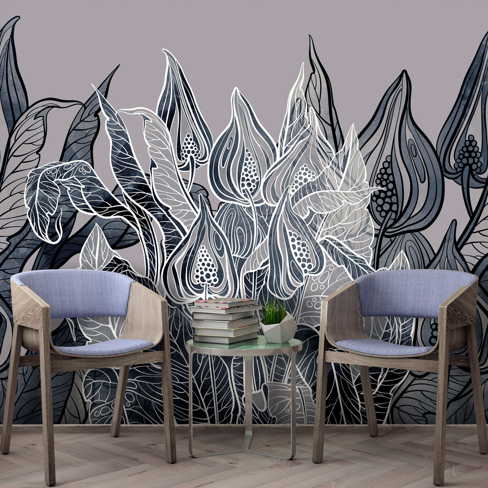 Guardate esattamente come apparirà il vostro spazio con la nuova carta da parati prima di acquistarla. Visualizzazione professionale da parte di designer esperti senza alcun costo o obbligo di acquisto.