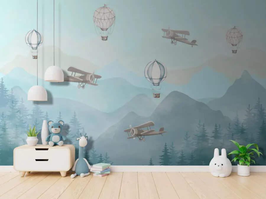 Immaginate di svegliarvi in un cielo morbido e sognante, con aerei d’epoca e affascinanti mongolfiere che fluttuano su montagne nebbiose. Questo murale “Aerei e mongolfiere su montagne nebbiose” è come un viaggio stravagante in una serena terra di fantasia. Perfetto per la camera dei bambini, aggiunge un tocco di magia e meraviglia, ispirando ogni giorno i piccoli avventurieri. Pensate alle storie della buonanotte o ai sogni mattutini. Facile da vedere con le sue tonalità pastello, farà sentire ogni spazio come una dolce fuga nell’immaginazione. Assolutamente adorabile, vero? Un delizioso mix di incanto e tranquillità, pronto ad accendere gioia e curiosità.