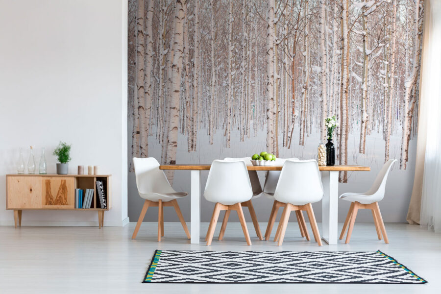Carta da parati Bosco di betulle innevato in inverno. (SKU: u74232)
