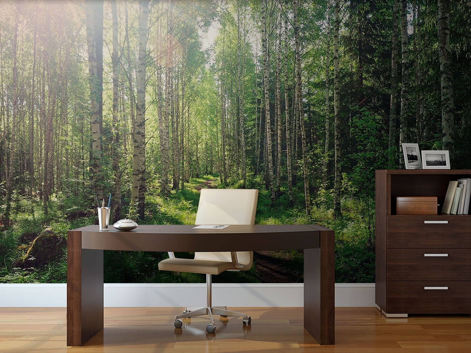 Guardate esattamente come apparirà il vostro spazio con la nuova carta da parati prima di acquistarla. Visualizzazione professionale da parte di designer esperti senza alcun costo o obbligo di acquisto.