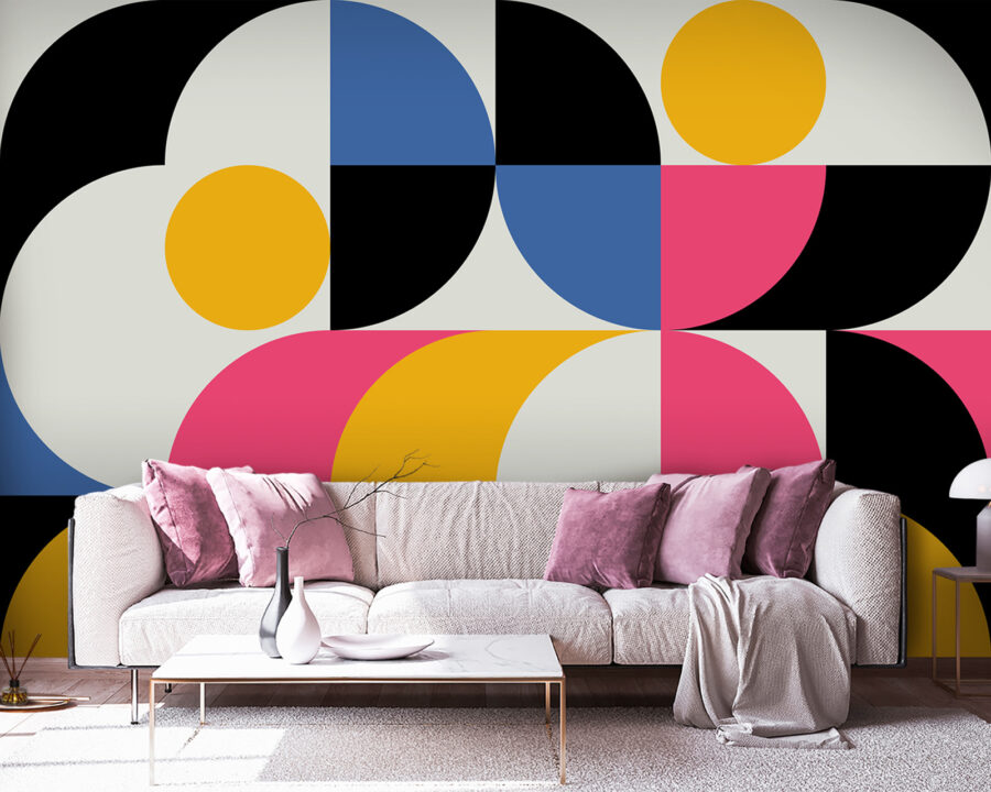 Date un’occhiata a questo vivace murale intitolato “Cerchio giallo con sfondo grigio”. È come se un museo d’arte moderna avesse deciso di trasferirsi a casa vostra! Gli audaci cerchi gialli spiccano sul grigio, creando un punto focale straordinario. Aggiungete spruzzi di blu, rosa e nero e avrete una festa sulla parete, come coriandoli congelati nel tempo.