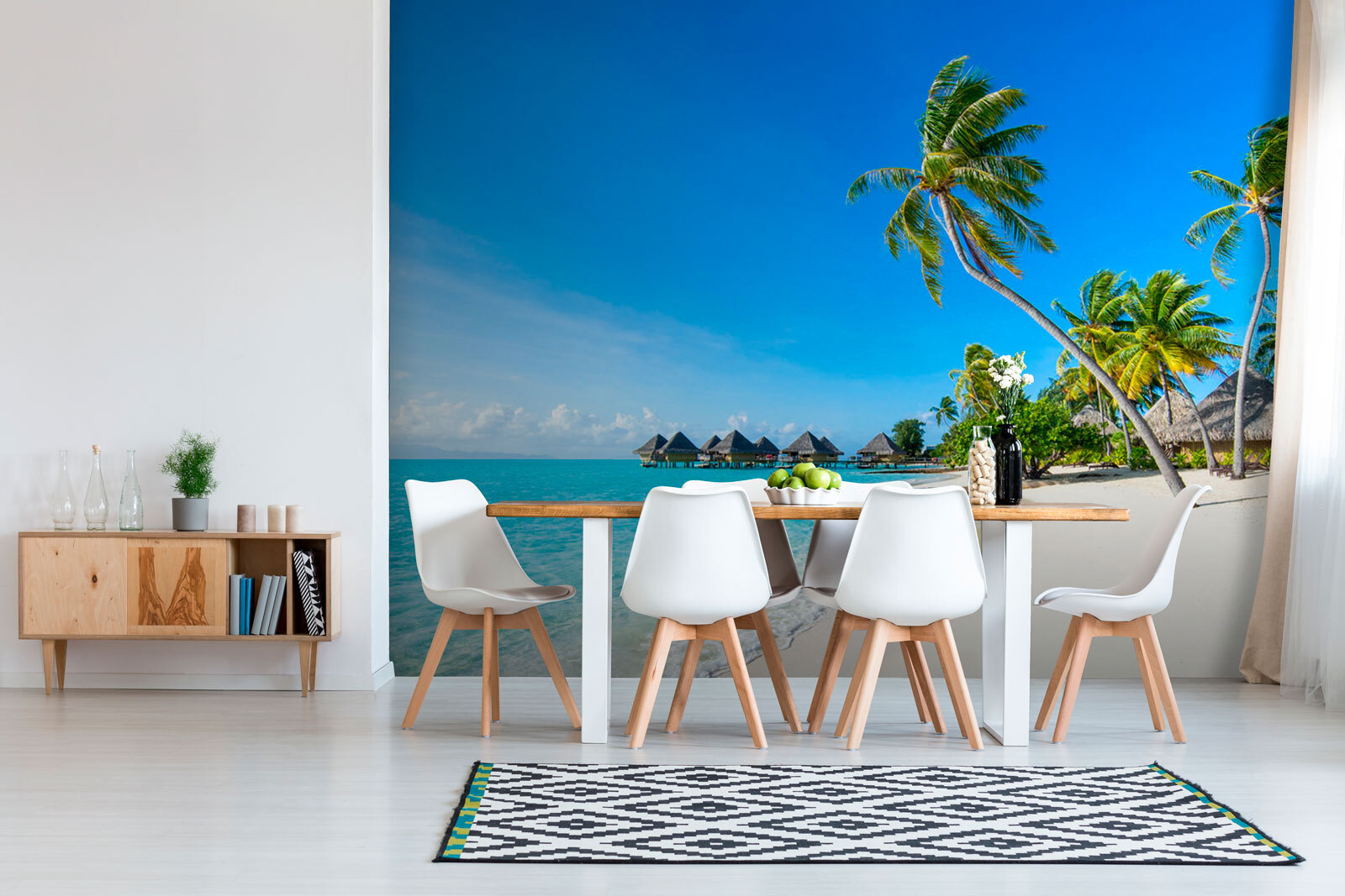 Immaginate di svegliarvi ogni giorno con la vista di una bellissima spiaggia con le palme che ondeggiano dolcemente nella brezza. Questo murale, intitolato “Spiaggia con palme e ombrelli di paglia”, porta quell’atmosfera da sogno in riva al mare direttamente nella vostra stanza. Se volete ricordare una vacanza passata o semplicemente infondere tranquillità al vostro spazio, questo disegno fa al caso vostro. Il cielo blu intenso, le acque limpide e turchesi e gli invitanti ombrelloni di paglia trasportano immediatamente in un paradiso rilassato e soleggiato. Perfetto per tutti gli amanti della costa, questo disegno si fa notare senza essere troppo forte: è più che altro un’esortazione amichevole a prendersela comoda, magari con un libro sotto una palma immaginaria. Immaginate di ospitare gli amici e di vedere la loro invidia quando entrano nella vostra stanza trasformata. C’è qualcosa nel morbido incresparsi delle onde e nella sagoma lontana di capanne da sogno che rasserena l’anima. Quindi, trasformate la vostra parete in una finestra sul paradiso: è la cosa migliore che ci sia!