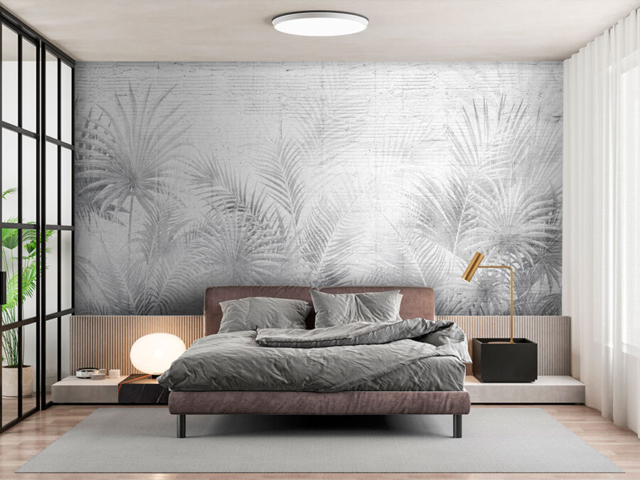 Carta da parati Carta da parati bianca e grigia con foglie di palma (SKU: u74401)