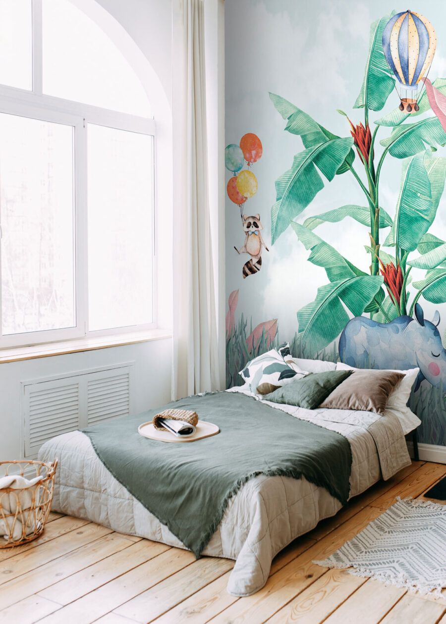 Trasformate la cameretta di ogni bambino in un’avventura stravagante con questo incantevole murale che raffigura un elegante procione che indossa un papillon e fluttua tra palloncini giocosi. Immaginate la gioia dei visi dei più piccoli quando si immergono in un mondo vibrante di animali: grifoni, zebre e persino un ippopotamo rilassato che se ne va in giro. Il verde lussureggiante e i colori pastello invitano alla creatività e accendono l’immaginazione. Non si tratta solo di arredamento, ma di un piccolo invito a sognare in grande. Immaginate l’ora della fiaba sotto questo affascinante murale: c’è qualcosa di magico nell’essere circondati da compagni così allegri. Perfetto per le camerette o le stanze dei giochi, questo murale dona calore e divertimento a qualsiasi spazio, incoraggiando le menti curiose a esplorare. Le vostre pareti non saranno mai più noiose e chi lo sa? Forse quel procione farà nascere conversazioni sulle avventure degli animali!