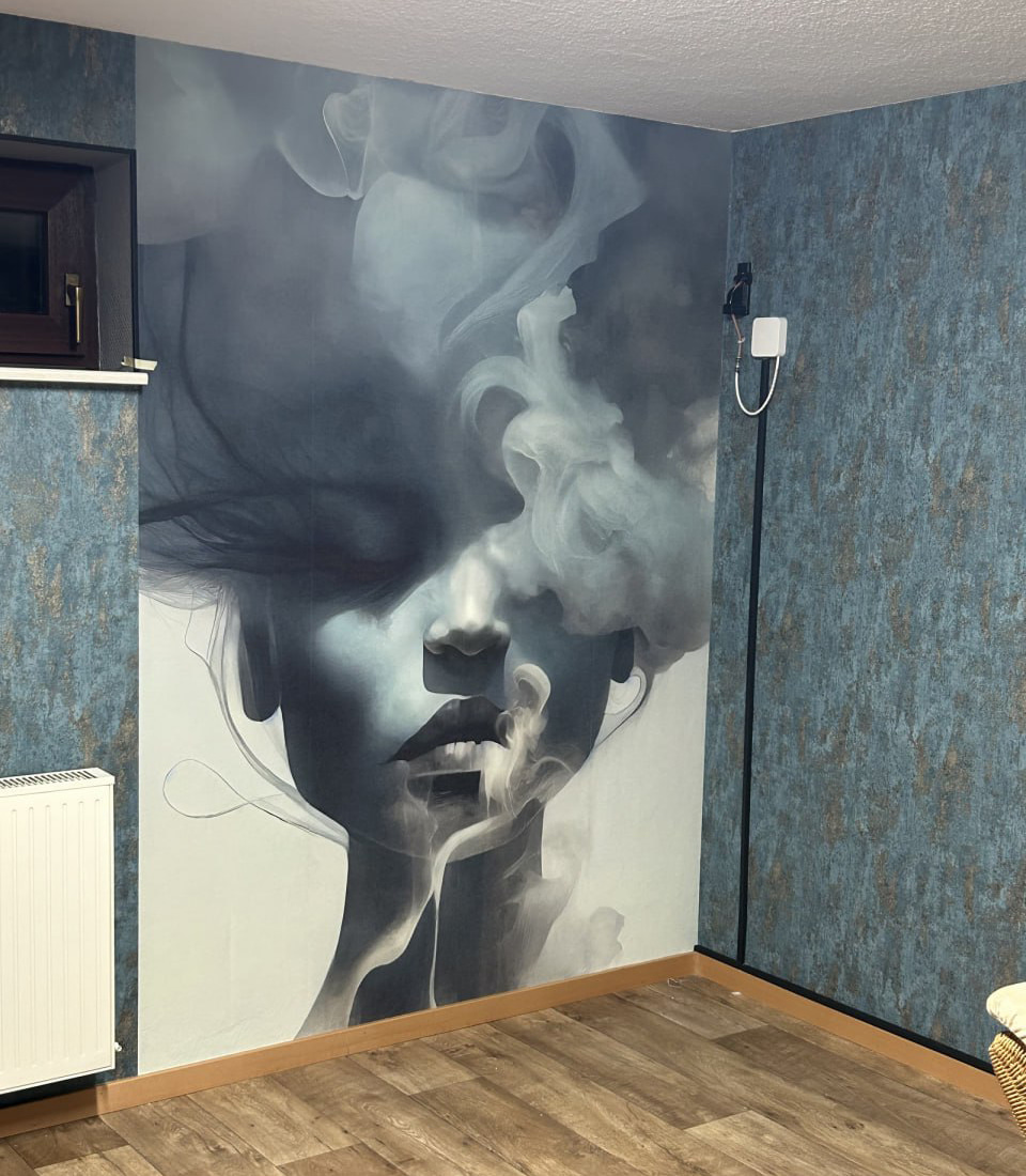 Trasformate il vostro spazio con questo splendido murale che raffigura un volto di donna avvolto da un fumo etereo. Immaginate di entrare in una stanza e di essere attratti da questo pezzo: la sua vibrazione misteriosa aggiunge un’aria di intrigo e tranquillità. La delicata mescolanza di sfumature crea una presenza rilassante, rendendolo perfetto per un accogliente angolo di lettura o per una rinfrescante fuga dalla frenesia quotidiana.