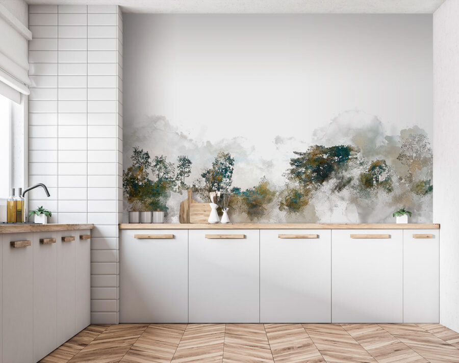 Trasformate il vostro spazio con questo murale da sogno con alberi e nuvole. È come avere una scena di natura serena direttamente sulla parete. Immaginate di svegliarvi con i verdi e i blu tenui che invitano a un senso di calma e calore. Si può quasi sentire il fruscio delle foglie e percepire una leggera brezza. Perfetto per un accogliente soggiorno o una tranquilla camera da letto, questo murale aggiunge profondità e personalità senza dare nell’occhio. Non si tratta solo di arredamento: è come avere una fetta di natura pacifica in casa, facendo sentire ogni sguardo come una mini-fuga. A chi non piacerebbe?