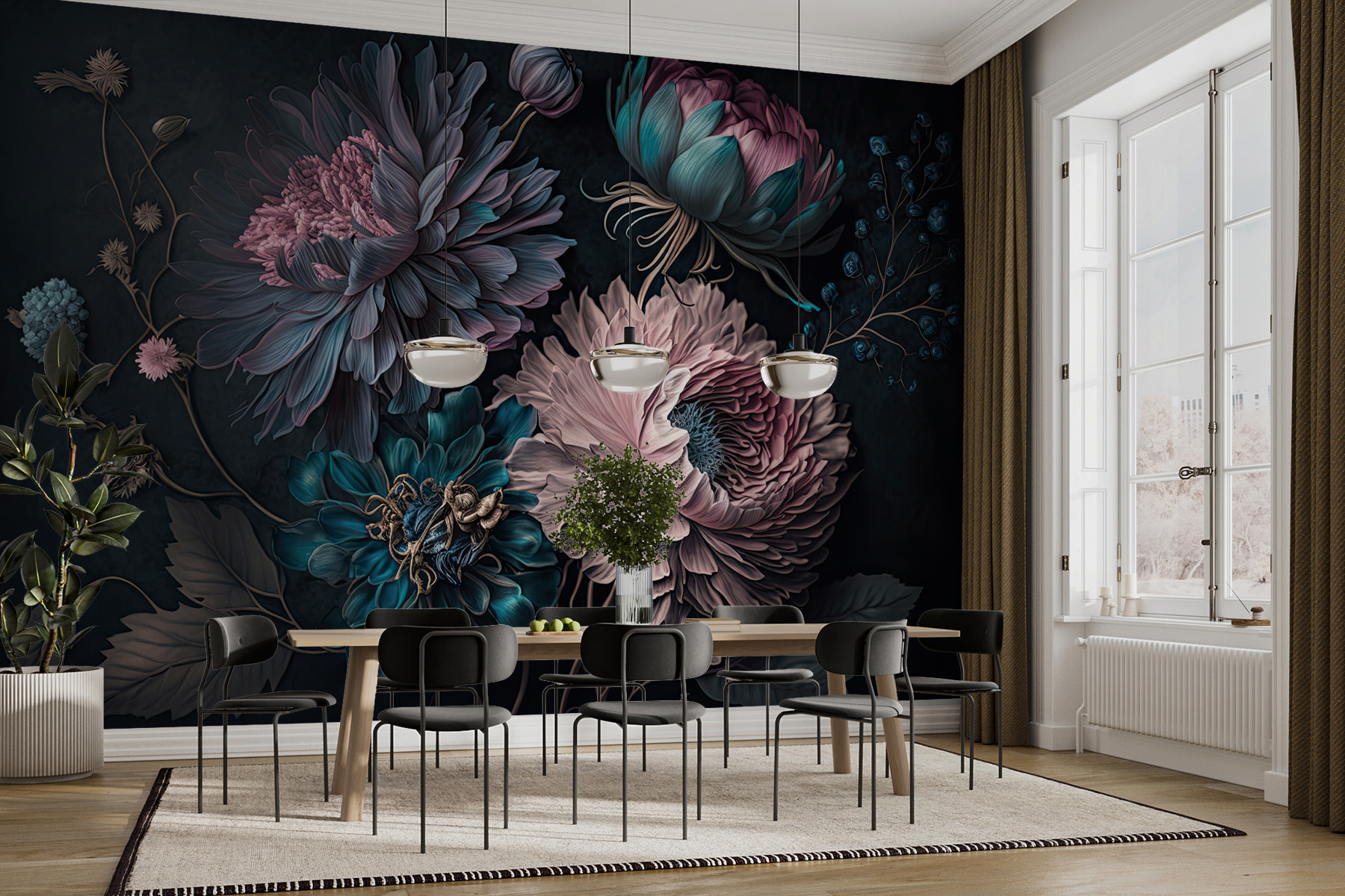Trasformate qualsiasi spazio con questo splendido murale che presenta fiori vivaci in una magica composizione. È come portare un giardino all’interno dell’abitazione, senza la sporcizia del terreno o i fastidiosi insetti. Immaginate di svegliarvi ogni giorno con queste splendide fioriture! I colori ricchi creano un’atmosfera accogliente e invitante, perfetta per salotti o angoli accoglienti. Immaginate di ospitare degli amici: tutti saranno attratti da quella parete, meravigliati da quei petali intricati. È un’attrazione immediata per la conversazione, credetemi. Non c’è bisogno di avere il pollice verde, basta l’amore per la bellezza e un pizzico di creatività. L’arte murale non è mai stata così vivace!