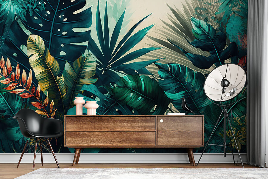 Avete mai desiderato di vagare in un lussureggiante paradiso tropicale senza uscire dal vostro salotto? Questo murale, dal nome stravagante “Vibrant tropical foliage in harmony”, potrebbe essere il vostro portale magico personale. Immaginate di sorseggiare il caffè del mattino, crogiolandovi nell’atmosfera serena di foglie di palma sovradimensionate e fogliame colorato che sembrano danzare insieme sulle vostre pareti. È un’atmosfera da giungla, ma senza gli insetti. Ideale per chi desidera un po’ di natura ma preferisce tenerla in casa. Sentitevi come Tarzan – o Jane! – che si muove nel verde, o semplicemente lasciate che i colori vivaci rinfreschino il vostro spazio. Perfetto per quella parete che sembra un po’ scialba, non credete?