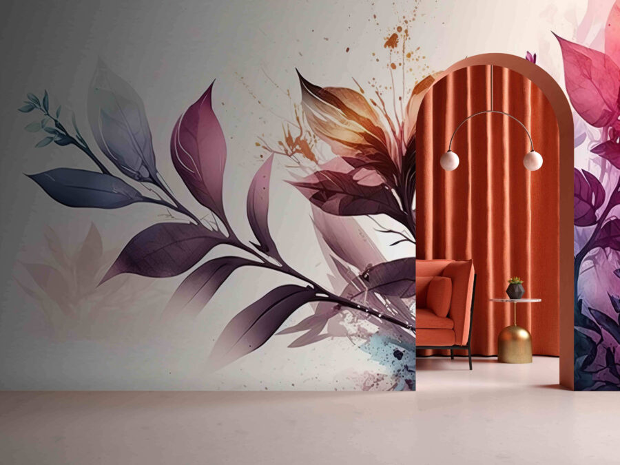 1 recensione per Carta da parati Foglie vibranti con spruzzi artistici