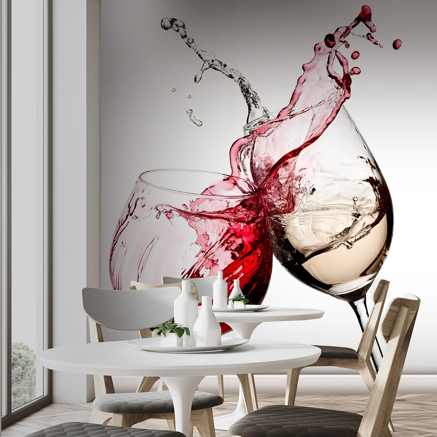 2 recensioni per Carta da parati Bicchieri di vino a metà del brindisi, spruzzi catturati