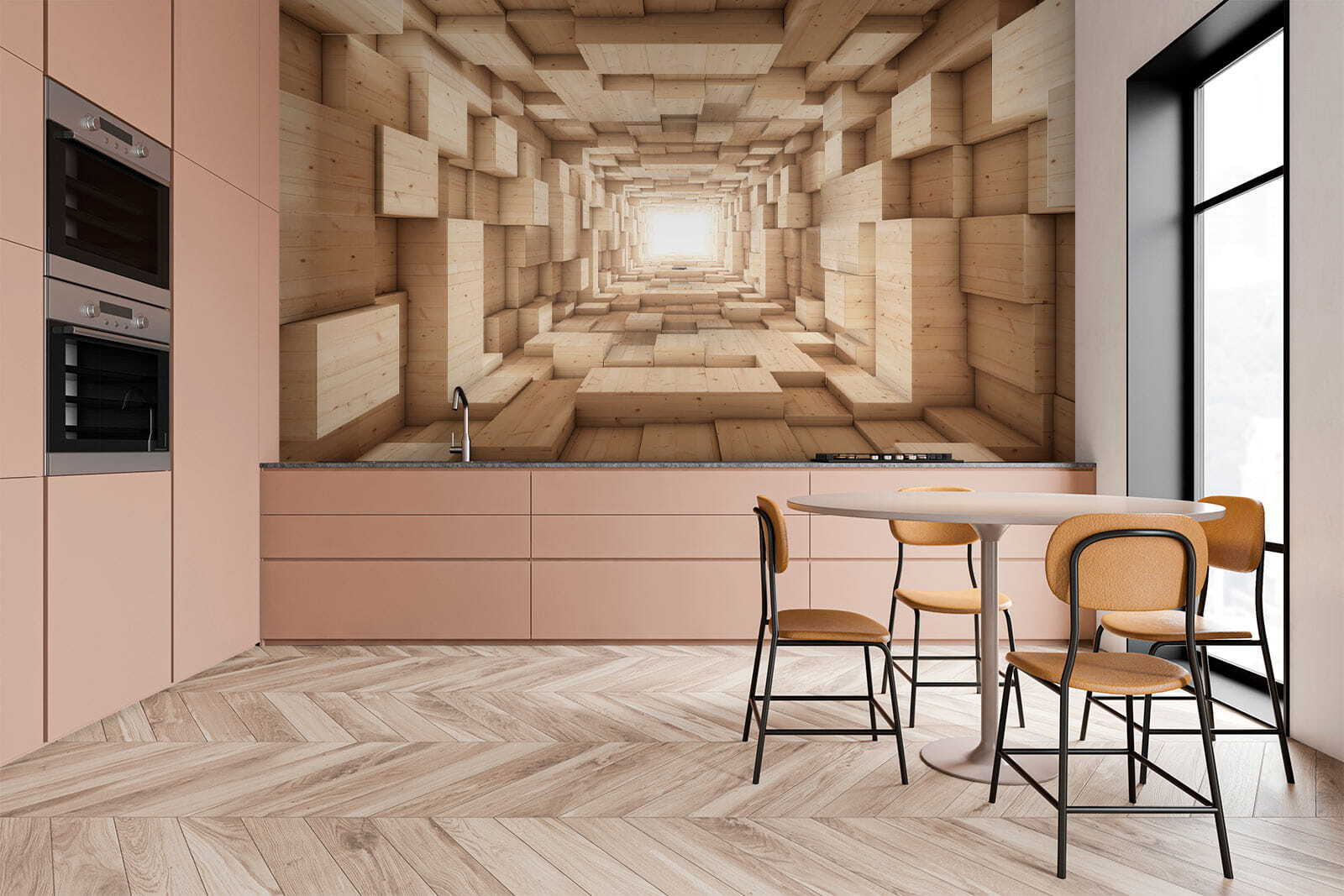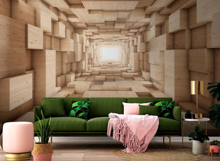 Ehi, guardate qui! Questo murale, “Wooden Box on a Wall”, è davvero fantastico. Immaginate di entrare in una stanza che sembra un labirinto di blocchi di legno in 3D: sembra uscito da un gioco d’avventura. Perfetto per chi ama i disegni moderni e astratti. Crea un senso di profondità e movimento, quasi come se la parete prendesse vita. Inoltre, le tonalità naturali del legno conferiscono un’atmosfera calda e accogliente. Ideale per trasformare il soggiorno, l’ufficio o qualsiasi altro spazio che abbia bisogno di un po’ di magia. Davvero, vi ritroverete a perdervi in esso, nel modo migliore possibile.