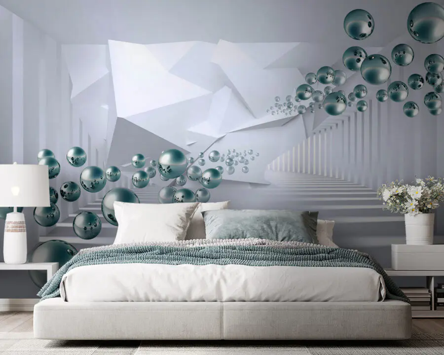 Trasformate qualsiasi spazio in un’evasione da sogno con questo murale con sfere fluttuanti in un corridoio elegante e astratto. Immaginatevi di entrare in una stanza che sembra uscita da un film di fantascienza. Le sfere sembrano danzare, invitando alla curiosità e alla meraviglia. È un perfetto spunto di conversazione: gli ospiti potrebbero chiedere se sono entrati in un’altra dimensione. I riflessi della luce creano un senso di profondità, facendo sentire le pareti vive, quasi come se respirassero. Ideale per un salotto accogliente o un ufficio stravagante, questo murale aggiunge quel pizzico di creatività che tutti segretamente desiderano. Lasciate che l’immaginazione prenda il sopravvento!