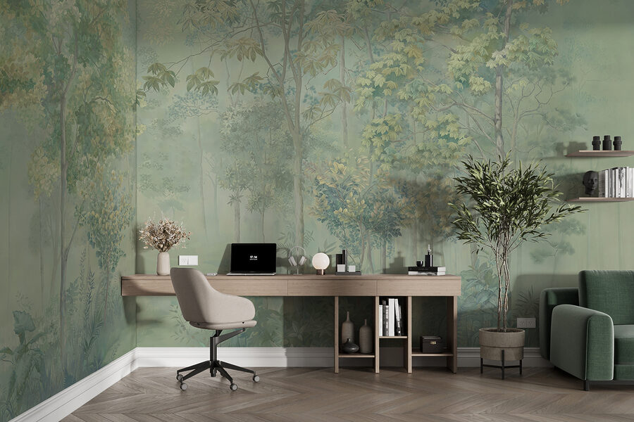Trasformate qualsiasi spazio in un rifugio rilassante con questo murale raffigurante un albero in una foresta nebbiosa. Immaginate di svegliarvi in un paesaggio morbido e sognante, dove la nebbia avvolge gli alti alberi e vi fa sentire immersi nella natura. È come se la vostra fuga personale fosse proprio su quelle pareti. Un piccolo spazio può improvvisamente sembrare vasto e sereno, invitando a sognare ad occhi aperti passeggiate nel bosco o accoglienti angoli di lettura. Inoltre, aggiunge un tocco unico: chi non vorrebbe un richiamo quotidiano alla pace dei boschi? È rilassante e rinfrescante, una miscela perfetta per chi desidera un po’ di tranquillità nella propria vita.