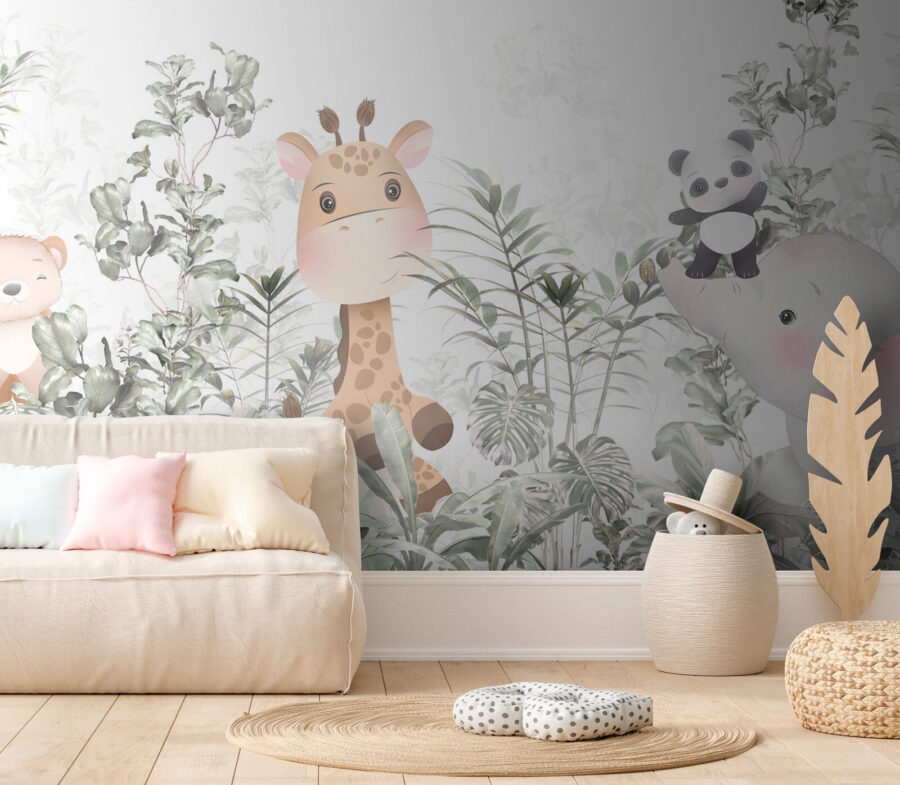 Trasformate lo spazio di un bambino in una stravagante avventura nella giungla con questo delizioso murale che raffigura un’affascinante giraffa, un giocoso panda e un dolce orsetto. Immaginate di entrare nella stanza e di sentire immediatamente il calore di un mondo naturale e vibrante, dove la creatività fiorisce e i sogni si librano. I colori delicati e gli animali incantevoli stimolano l’immaginazione, rendendo l’ora della fiaba un’esperienza ancora più magica. Perfetto per scatenare risate e sensazioni accoglienti, è come avere una piccola fetta di natura selvaggia proprio sulle pareti. Chi non vorrebbe svegliarsi circondato da questo gruppo colorato? La giungla non è solo per gli animali, ma anche per i più piccoli!