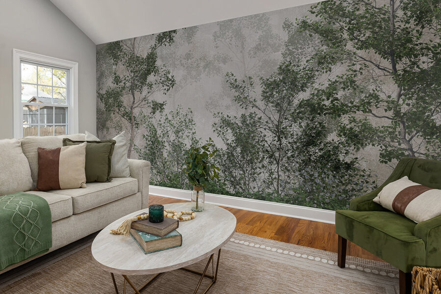 Immaginate di entrare in una stanza dove il tempo rallenta e siete immediatamente avvolti dai dolci sussurri della foresta. Ecco cosa fa questo murale “Misty Forest with Green Foliage” al vostro spazio: lo trasforma in un sereno rifugio nel bosco. Il mix di nebbia e foglie verdi aggiunge un’atmosfera fresca e rilassante che vi farà giurare di sentire l’odore del pino e della terra.