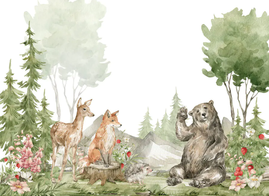 Guardate questa incantevole scena della foresta! Perfetto per la cameretta di ogni bambino, questo murale “Carta da parati Forest animals greeting each other warmly” è come portare una favola in casa vostra. Immaginate che il vostro piccolo si svegli con un orso che lo saluta, cervi e volpi che fanno una chiacchierata mattutina e un simpatico porcospino che si fa un giro. È come una parata del bosco sulle vostre pareti! L’atmosfera morbida e acquerellata aggiunge un tocco di estrosità e calore, ideale per creare un’atmosfera accogliente e magica. I vostri bambini lo adoreranno e, onestamente, probabilmente vi ritroverete a sorridere ogni volta che passerete di lì!