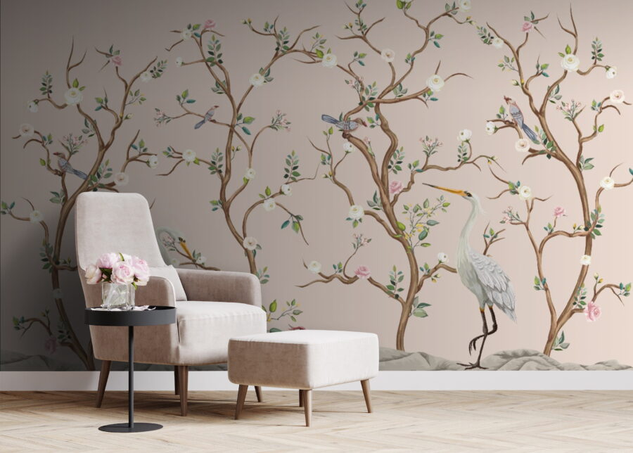Carta da parati Carta da parati Carta da parati con uccelli e fiori (SKU: u79607)