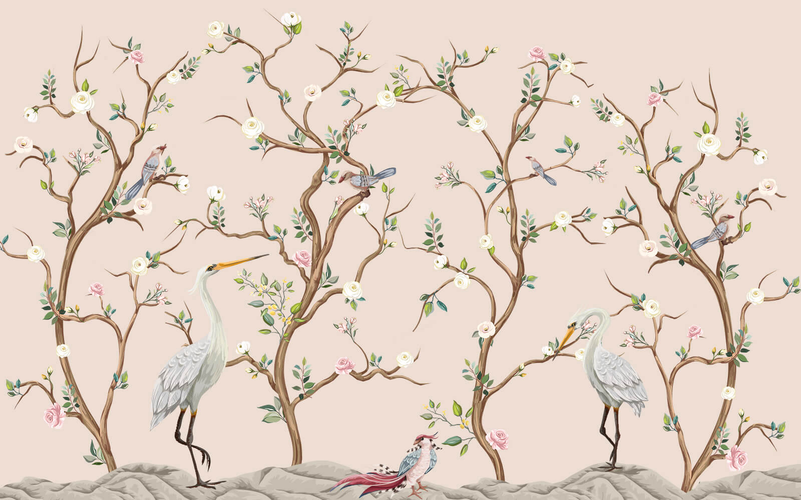 Carta da parati Carta da parati Carta da parati con uccelli e fiori (SKU: u79607)