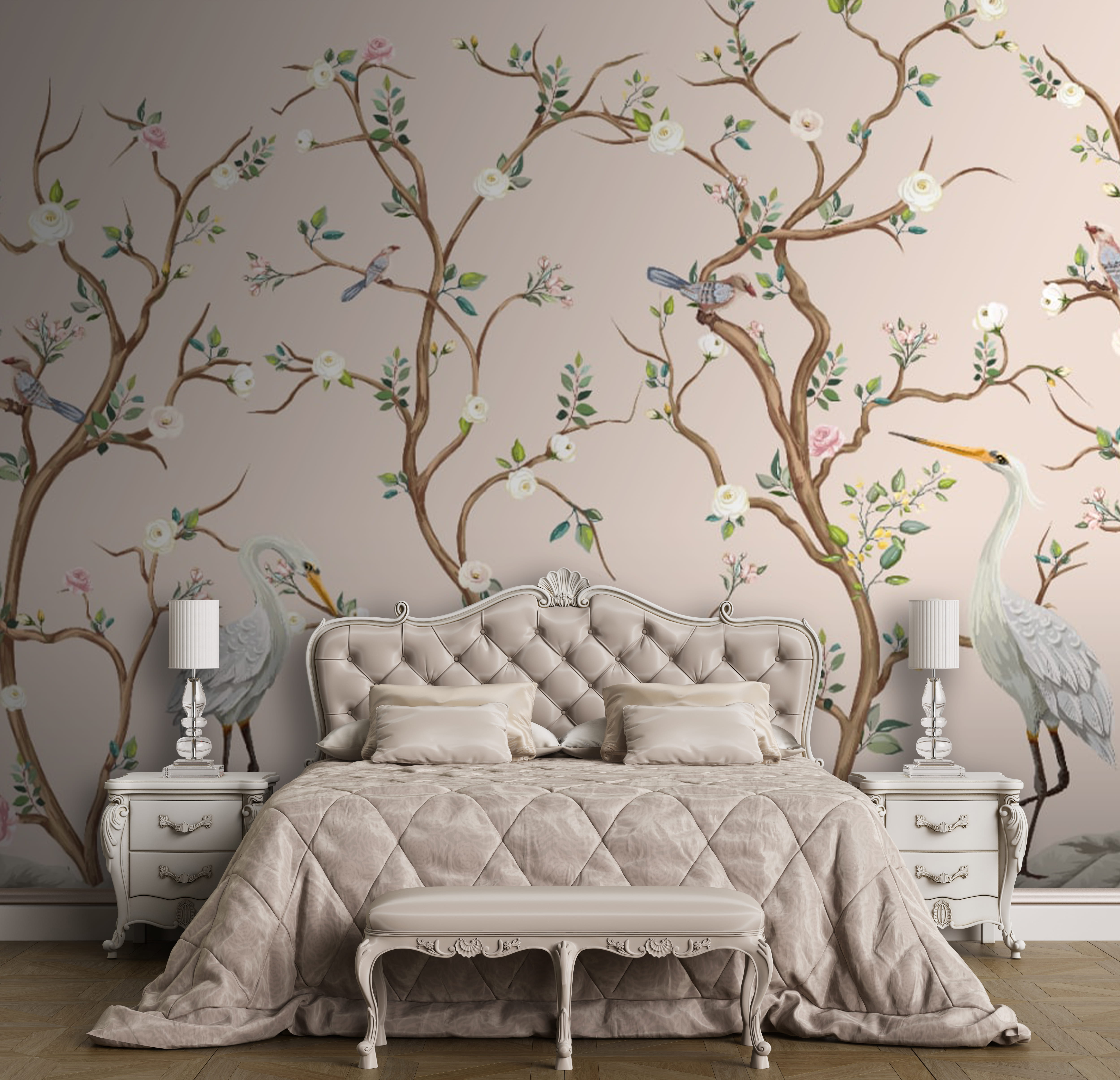 Carta da parati Carta da parati con uccelli e fiori Carta da parati Carta da parati con uccelli e fiori